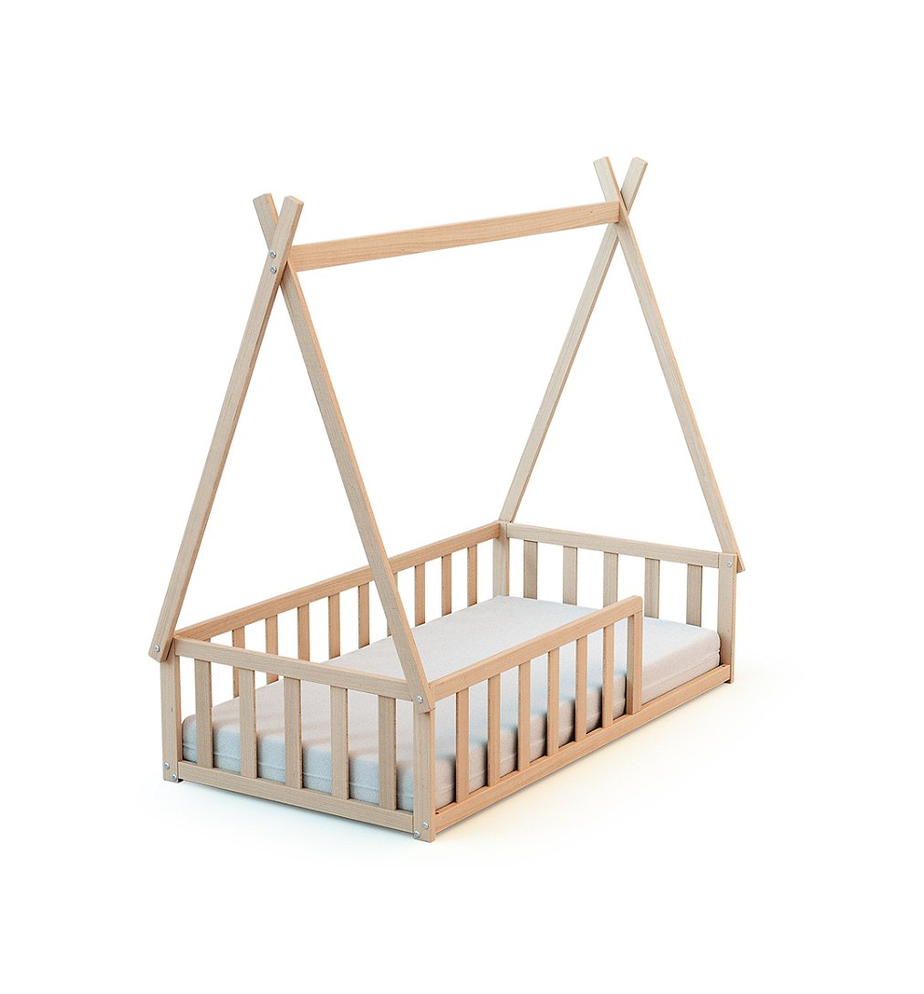 Libellé WEBABY - Lit Tipi au sol 70 x 140 en bois Hêtre Brut