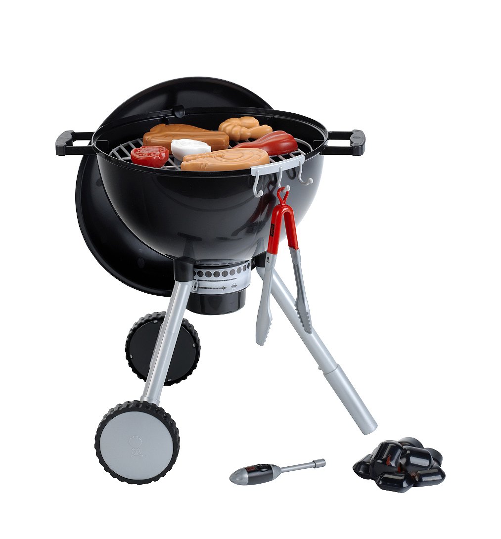 Fidèle reproduction du modèle original, ce barbecue WEBER One Touch Premium est superbe avec ses effets sonores et lumineux. Du haut de ses 53 cm, il est équipé de deux roues, de poignées latérales, de crochets pour suspendre les ustensiles et d'un couvercle. L'heure du repas approche ? Commence par allumer le feu. Pour cela, place l'allume-feu près du charbon. Ce dernier se met à rougeoyer et à grésiller ! Quand tu es prêt, dispose les ingrédients de ton choix sur la grille - steak, poisson, crevette, poivron, tomate, oignon et prépare un bon repas pour tes invités. Utilise la pince pour retourner les aliments et retire-les une fois la cuisson terminée. A partir de 3 ans. Fabriqué en Allemagne