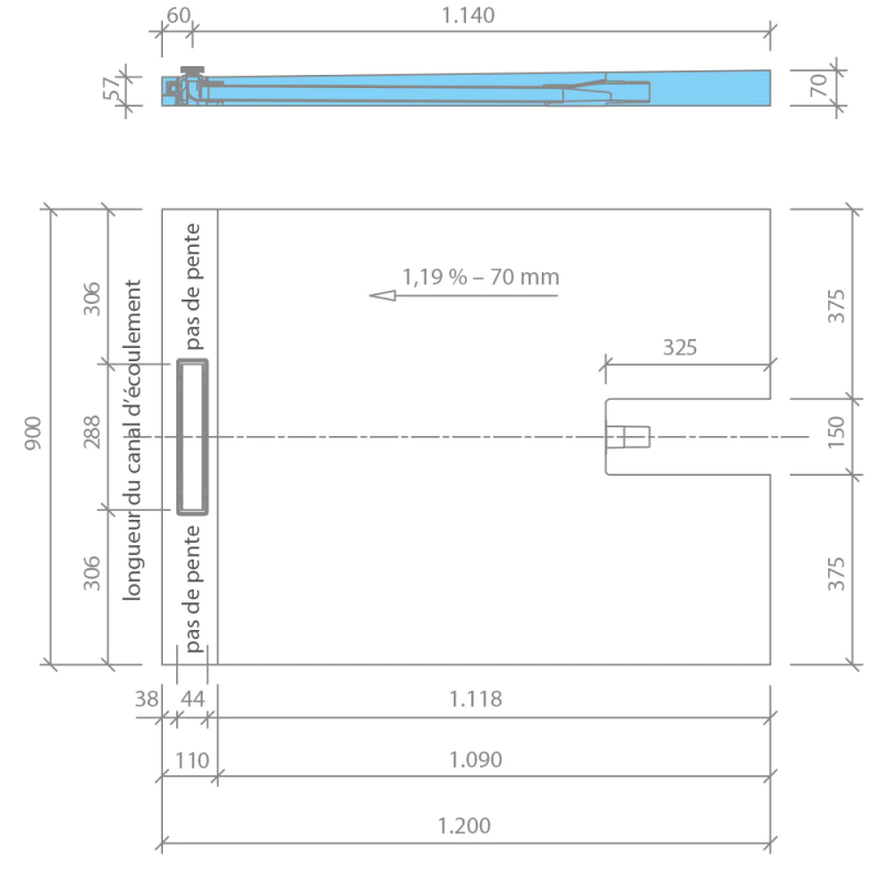 Aspect esthétique avec canal d'écoulement au plus près du mur