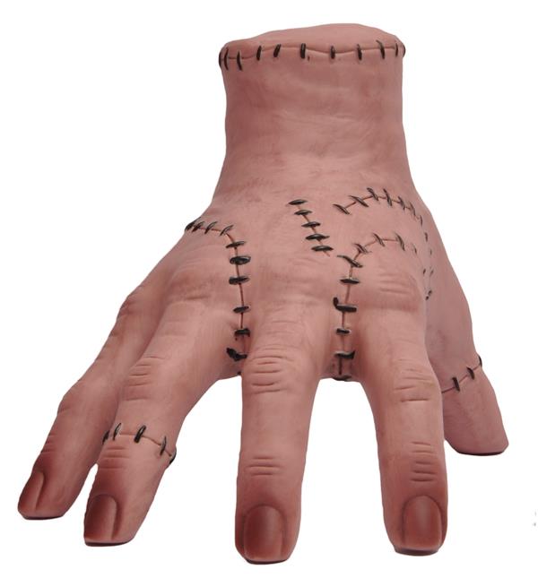 La fameuse main de la famille Addams La Chose remis au gout du jour par la série à succès Wednesday de Netflix Faite en silicone souple de bonne qualité, elle tiendra sur votre épaule et fera son petit effet. 20 cm.