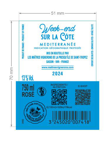 | Libellé | Week-end sur la Côté, 2024 - Méditerranée IGP - Rosé - 75 cl |