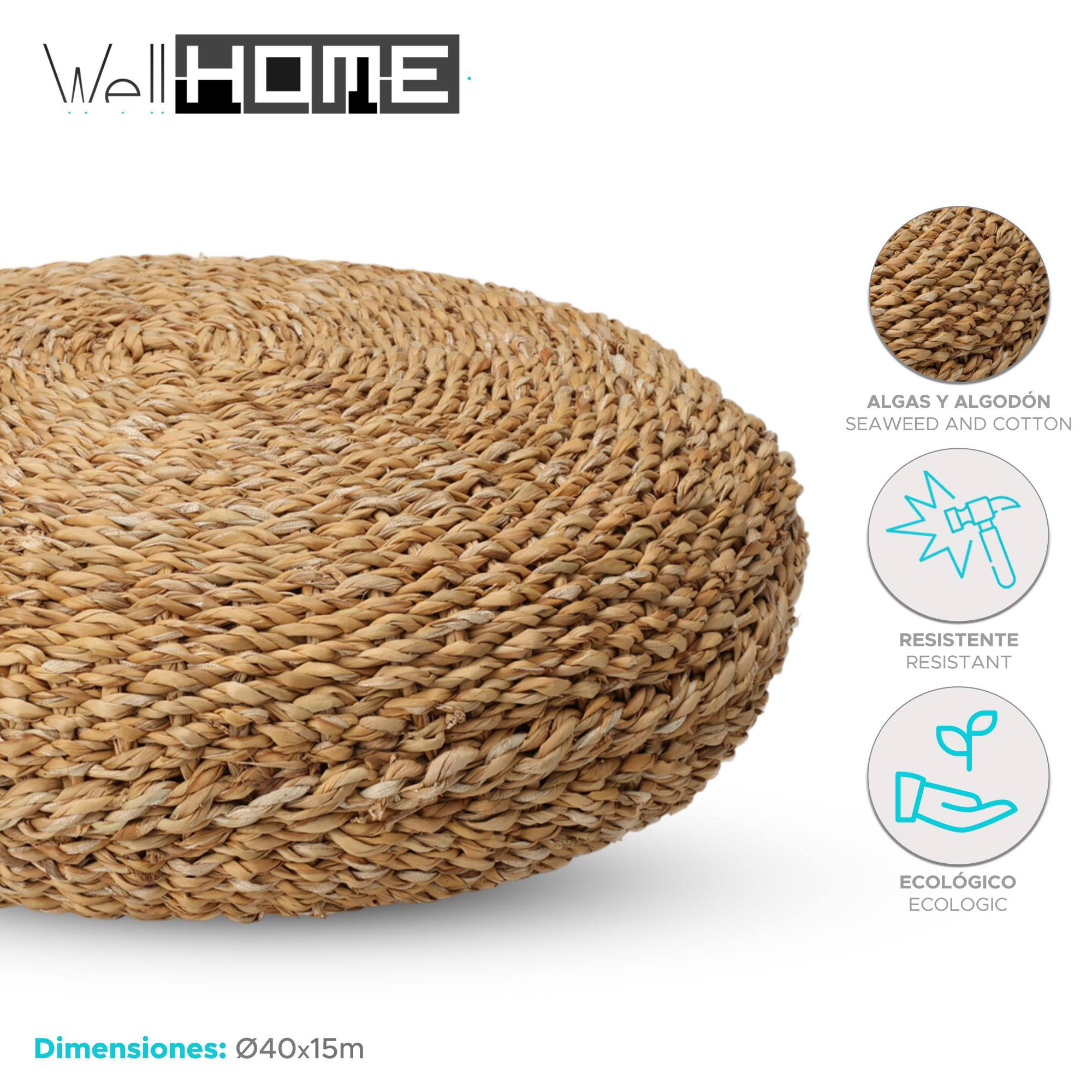 | Libellé | Well Home Pouf rond en algues et coton au design naturel diam.40x15cm |
