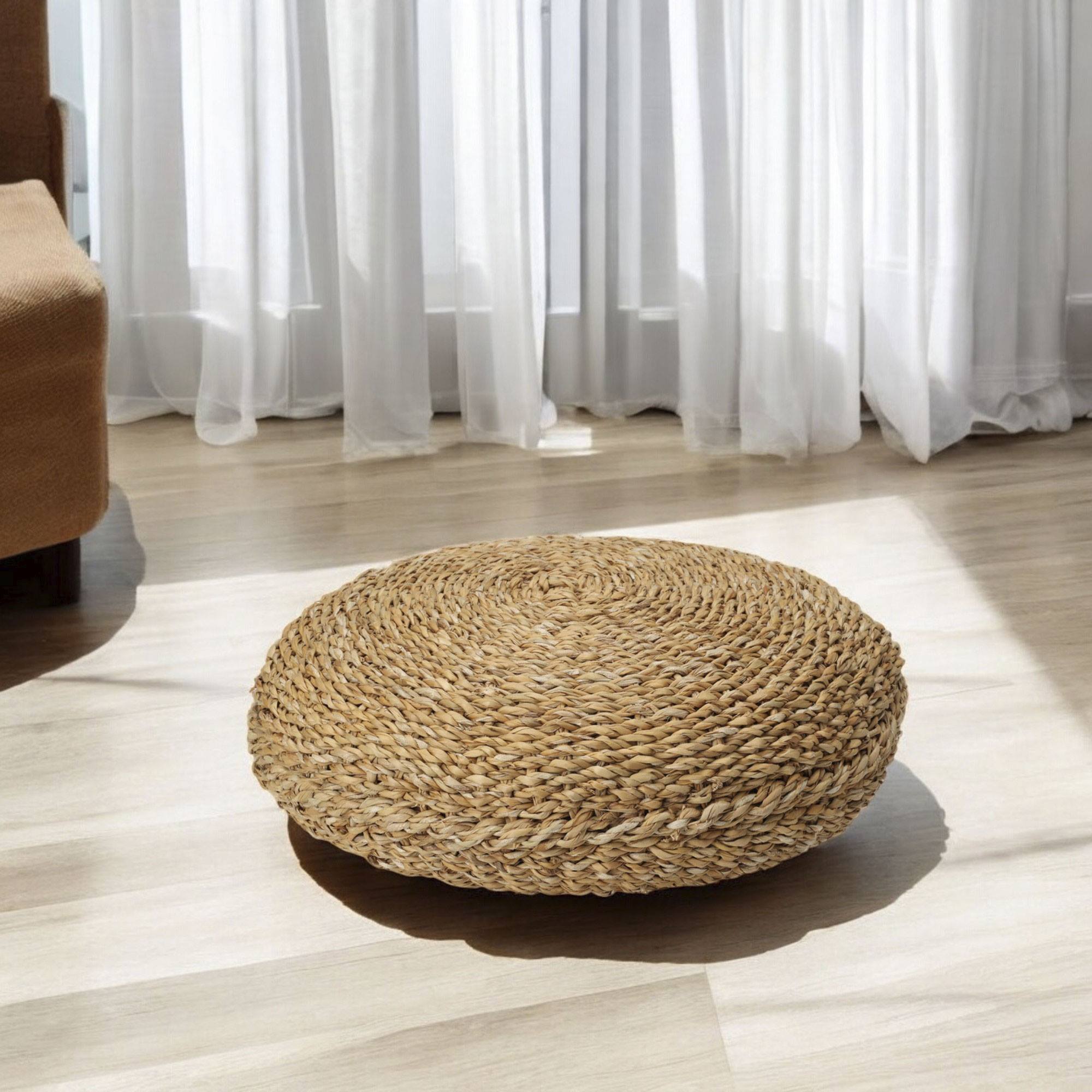 Well Home Pouf rond en algues et coton au design naturel diam.40x15cm