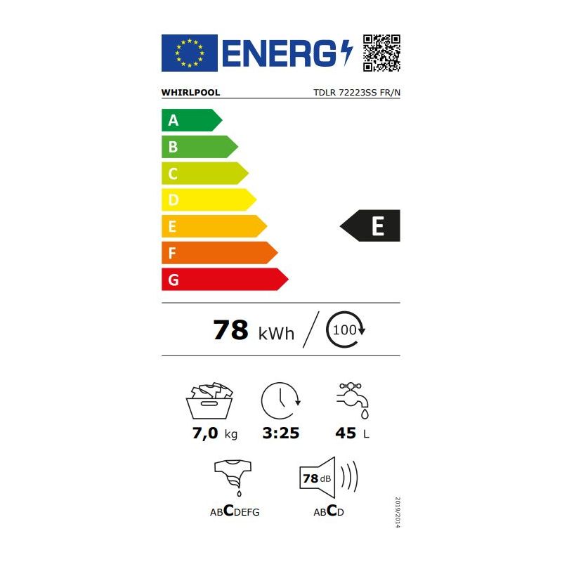 | Libellé | WHIRLPOOL Lave-linge top 7kg 1200trs/min 6eme Sens Machine à laver |
