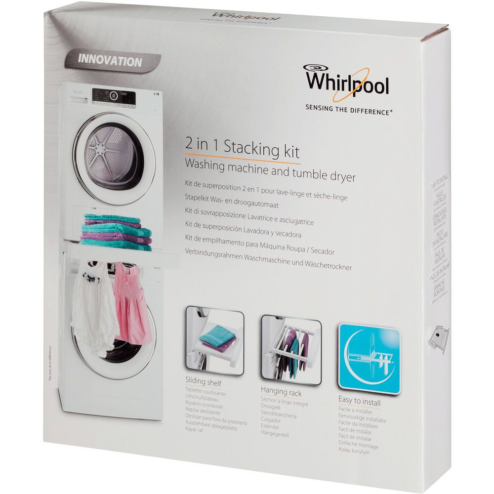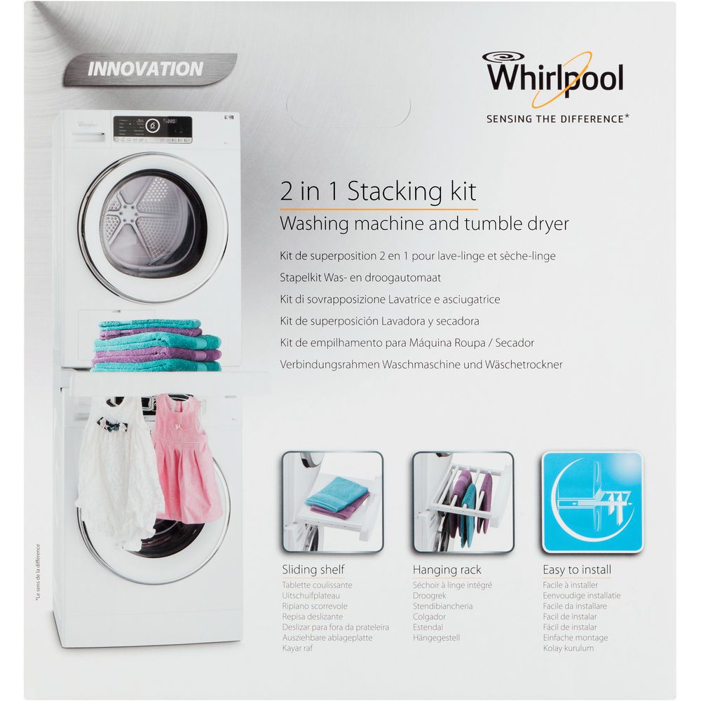 Whirlpool SKS200. Type de produit: Kit d’empilage, Couleur du produit: Blanc, Matériel: Plastique. Largeur: 600 mm, Profondeur: 600 mm, Largeur du colis: 590 mm. Type d'emballage: Boîte, Quantité: 1 pièce(s)