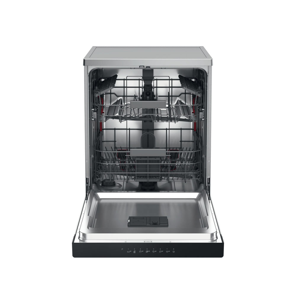 Whirlpool WFC 3C26 P X. Placement de l'appareil: Pose libre, Taille du produit: Taille maximum (60 cm), Couleur de la porte: Acier inoxydable. Nombre de couverts: 14 couverts, Classe d'émission sonore: C, Niveau sonore: 46 dB. Classe d'efficacité énergétique: E, Consommation d'eau par cycle: 9,5 L, Consommation d'énergie pour 100 cycles: 95 kWh. Largeur: 600 mm, Profondeur: 600 mm, Hauteur: 850 mm. Largeur du colis: 650 mm, Profondeur du colis: 675 mm, Hauteur du colis: 910 mm