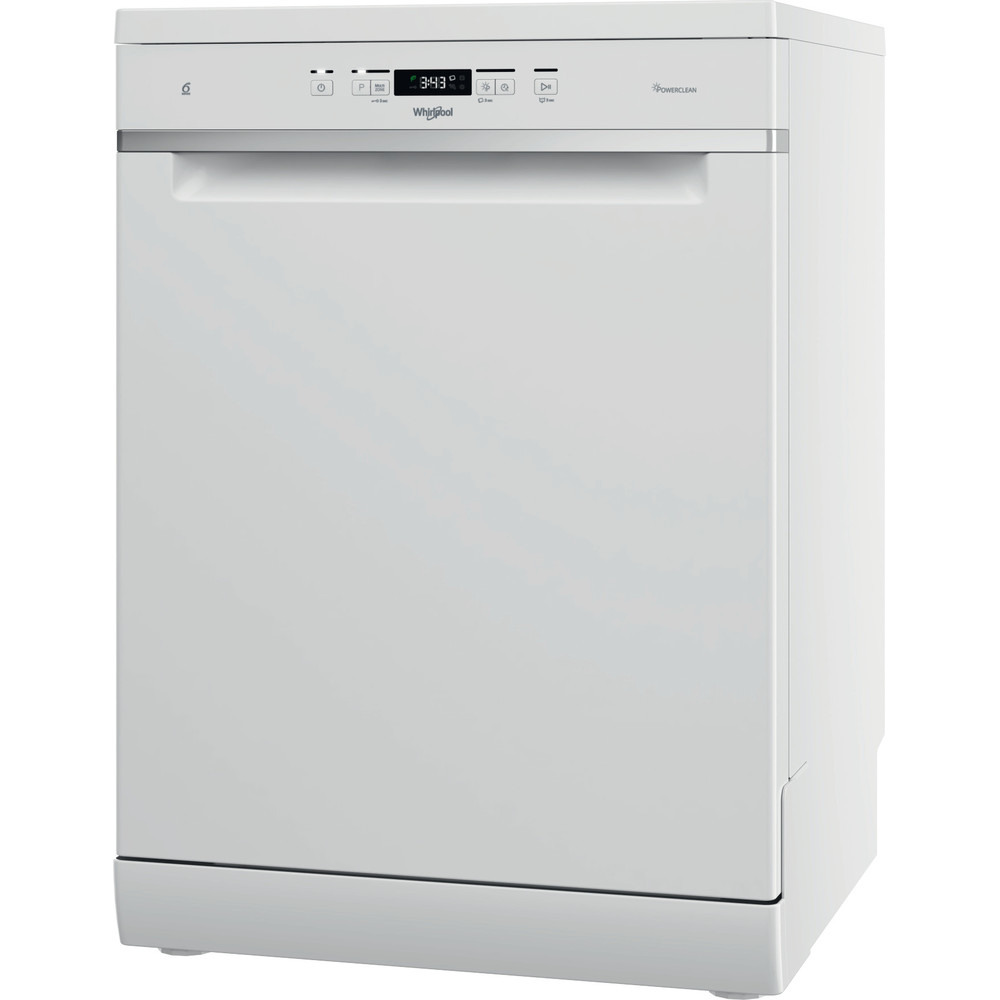 Whirlpool WFC 3C33 PF. Placement de l'appareil: Comptoir, Taille du produit: Taille maximum (60 cm), Couleur de la porte: Blanc. Nombre de couverts: 14 couverts, Classe d'émission sonore: B, Niveau sonore: 43 dB. Classe d'efficacité énergétique: D, Consommation d'eau par cycle: 9,5 L, Consommation d'énergie pour 100 cycles: 85 kWh. Largeur: 600 mm, Profondeur: 590 mm, Hauteur: 850 mm. Poids du paquet: 49 kg