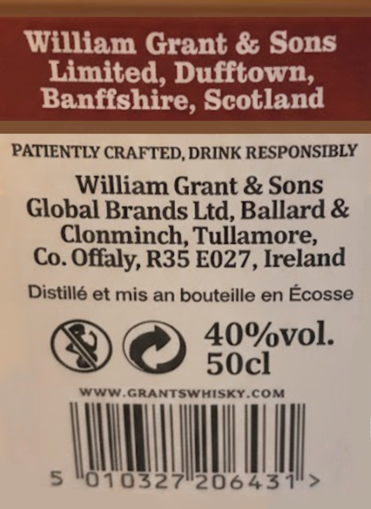 | Libellé | Whisky Blended Malt Grant's Triple Wood - Ecosse, 40 % vol. - 50 cl |