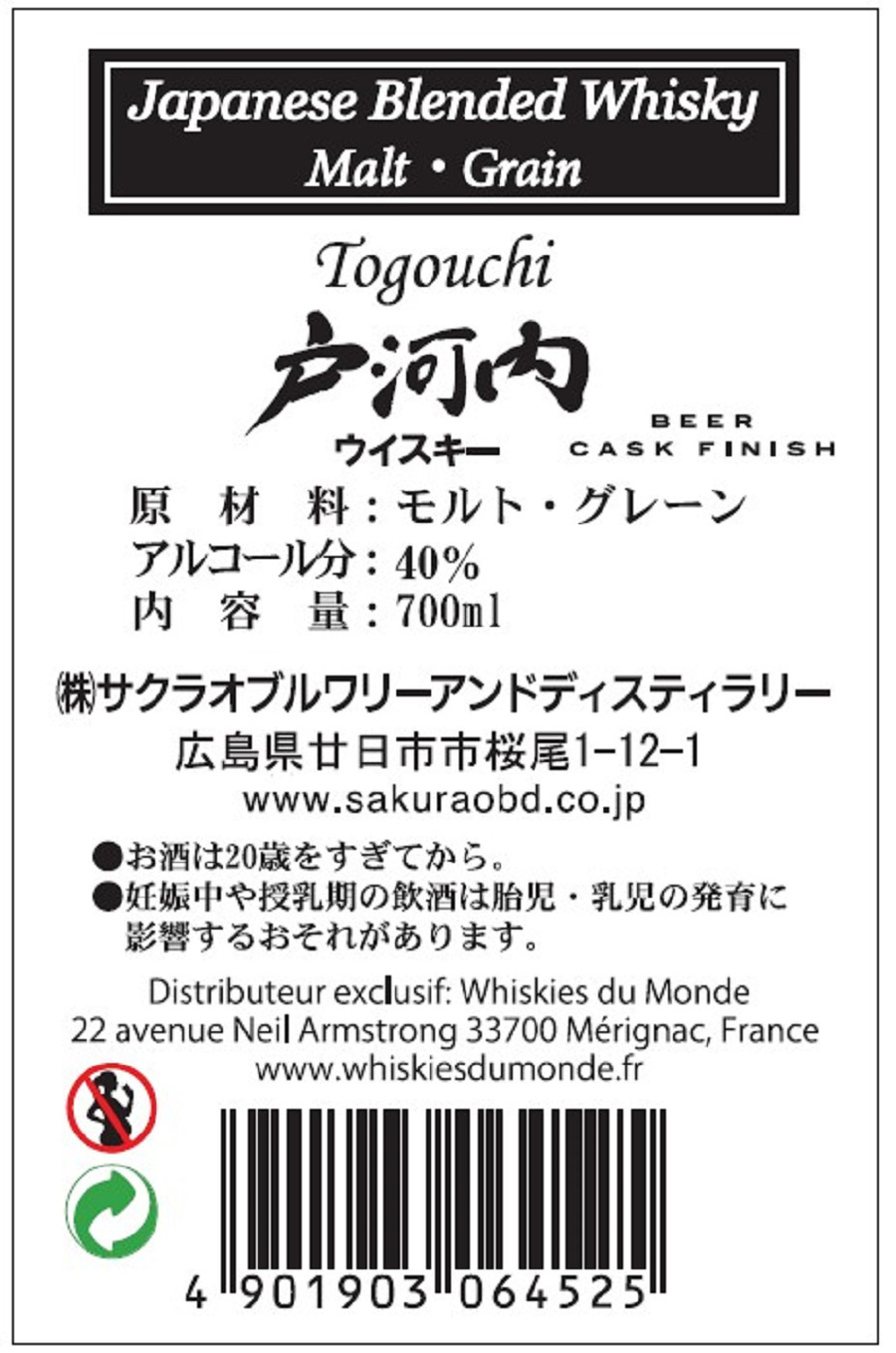 | Libellé | Whisky Blended Togouchi Beer Cask Finish - Japon, 40 % vol. - 70 cl |