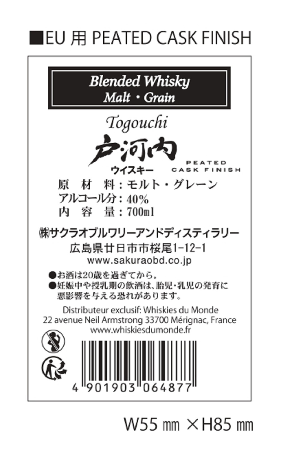 | Libellé | Whisky Blended Togouchi Peated Cask finish - Japon, 40 % vol. - 70 cl |