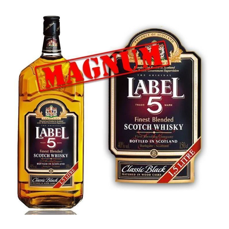 | Libellé | Whisky Blended whisky Label 5 Label 5 - 1,5L - Ecosse, 40% vol. - 1.5 L |