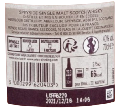 | Libellé | Whisky Single Malt Aberlour 10 ans - Ecosse, 40% vol. - 70 cl |