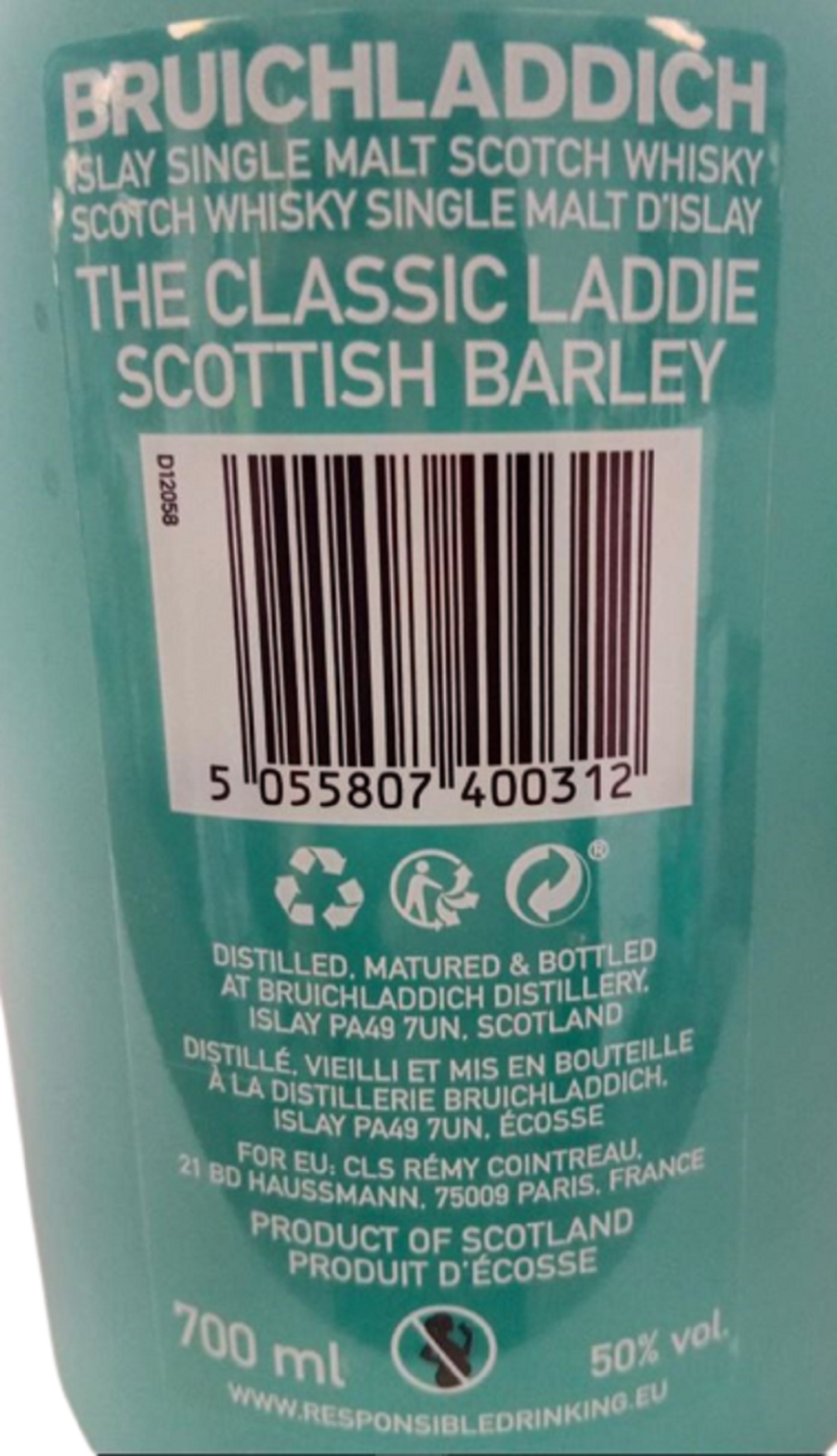 Libellé Whisky Single Malt Bruichladdich The Classic Laddie - Ecosse, 50% vol. - 70 cl