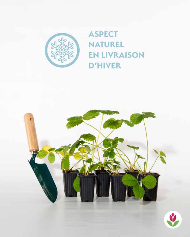 Fruits savoureux au délicieux parfum de fraise des bois. A cueillir bien mûrs. Qualité livrée en racines nues. <-> 30-40 cm.