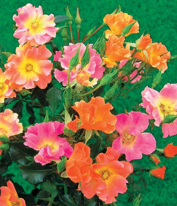 Si vous recherchez un plante capable de former un tapis de fleurs dans votre jardin et d’apporter une touche de peps et d’originalité, optez pour les rosiers couvre-sols ‘Happy chappy’. Vous profiterez de leurs magnifiques fleurs particulièrement lumineuses qui changent de couleur en cours d’épanouissement et portées par de longs rameaux souples.