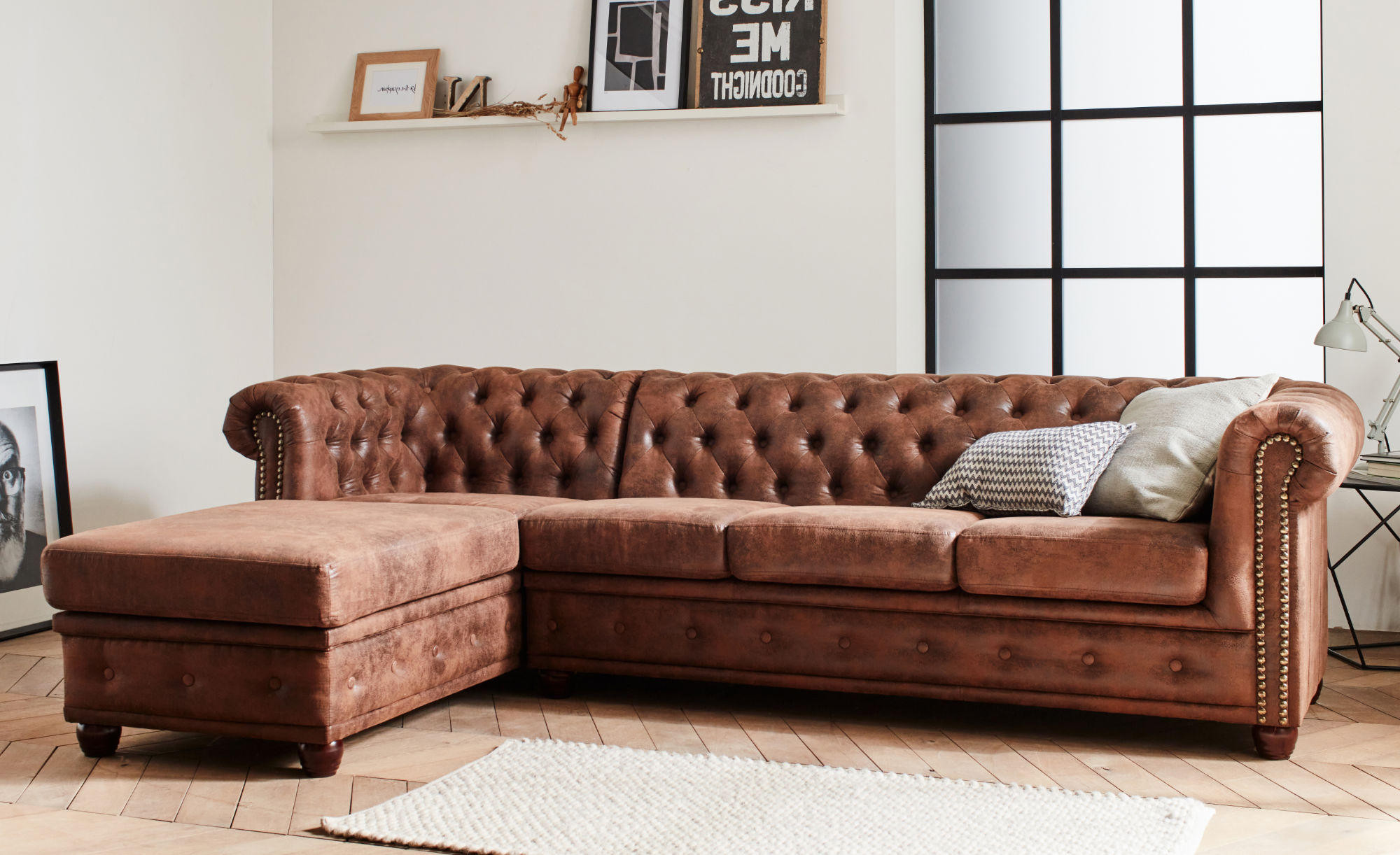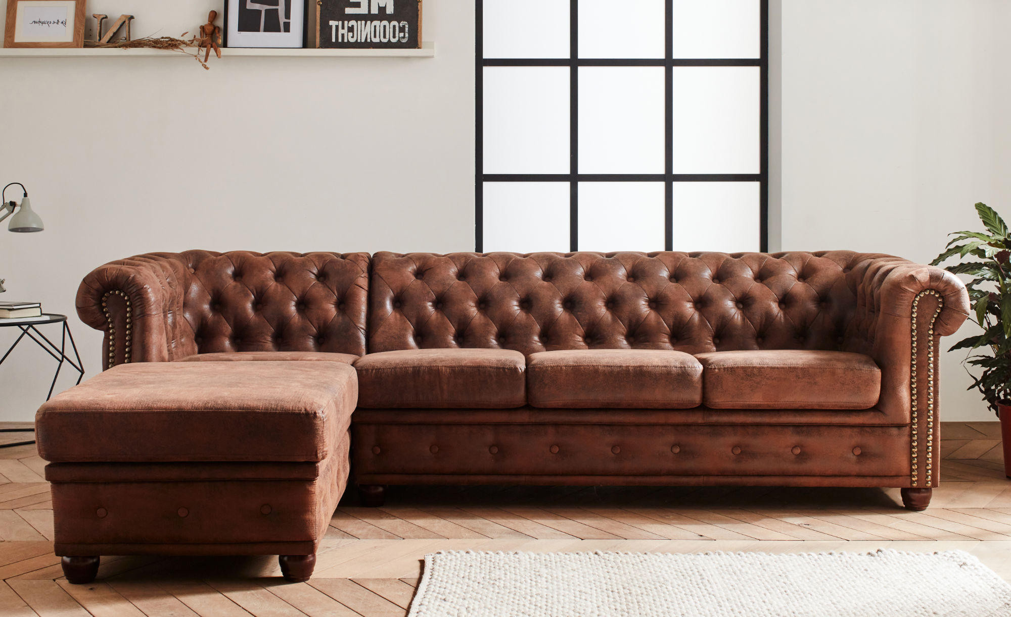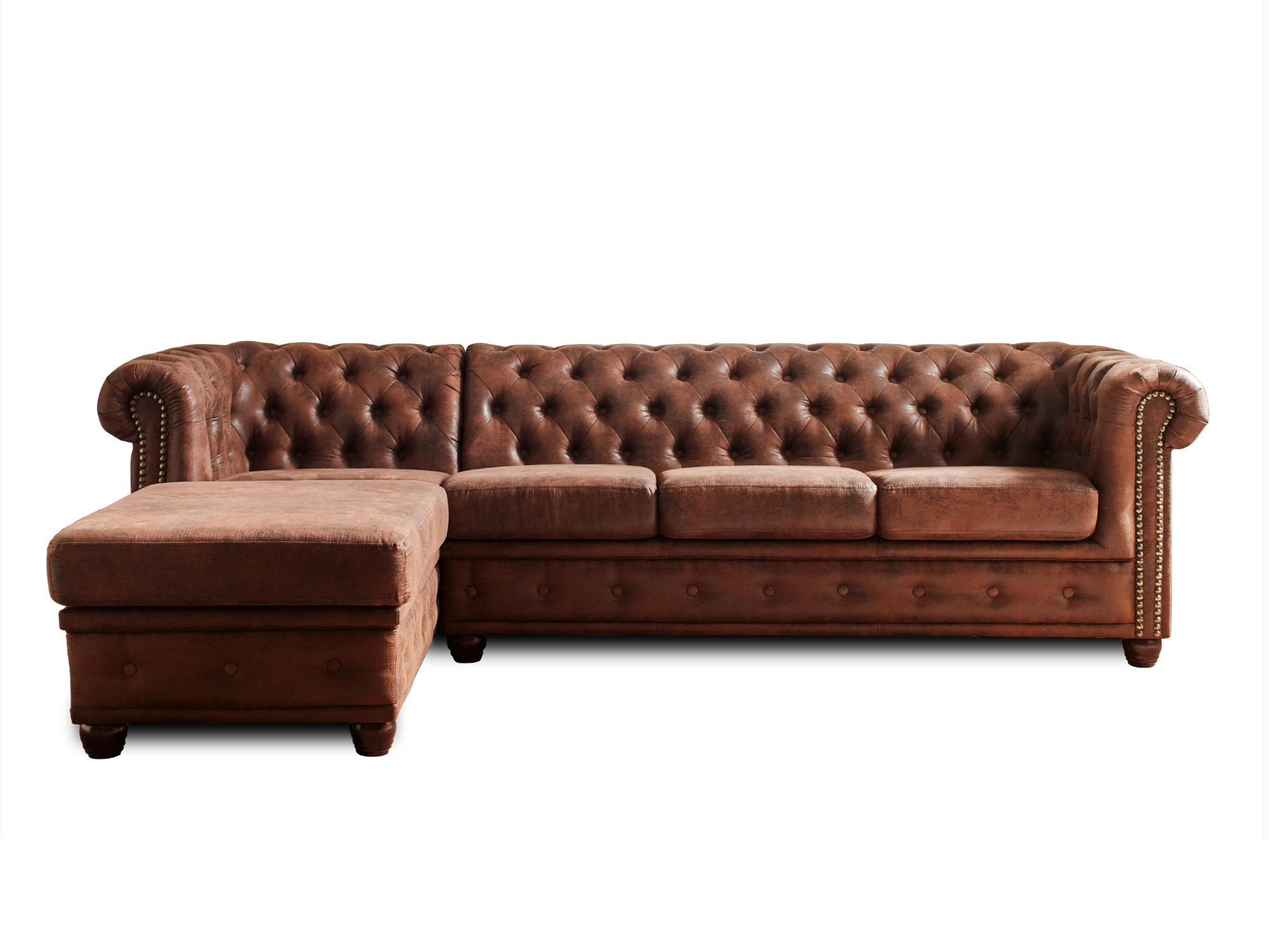 Winston - Canapé d'angle Chesterfield - 4 places - style industriel - gauche