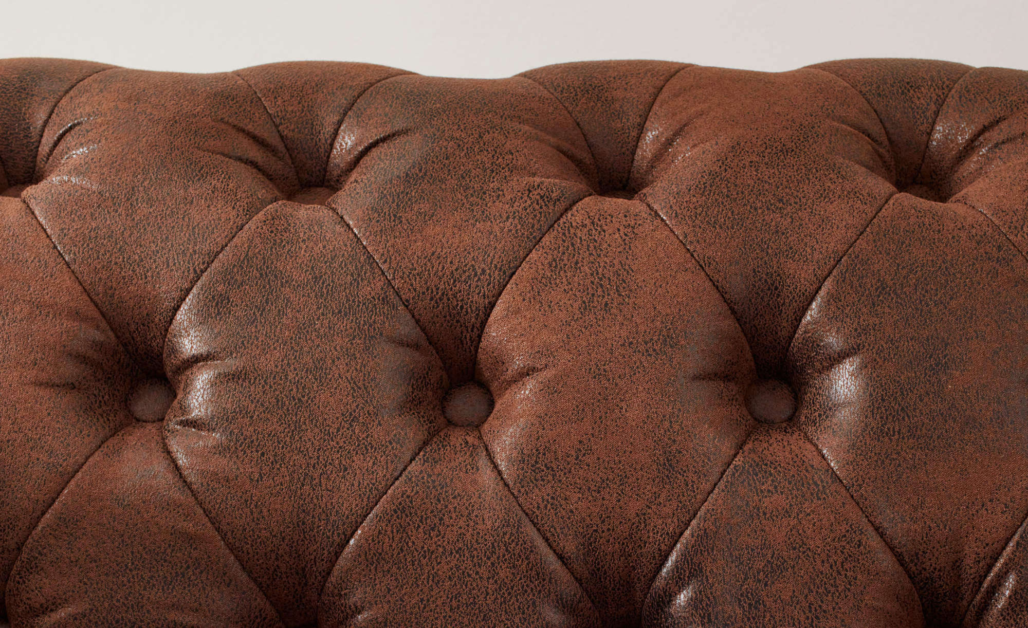 Le canapé d’angle gauche 4 places Winston reproduit le style affirmé du Chesterfield avec son revêtement en microfibre aspect vieilli. Celui-ci apporte une douceur au toucher et une souplesse d’assise. Grâce sa forme unique, ses clous dorés sur les accoudoirs et son capitonnage en finition, il se mariera facilement avec différents types de décoration d’intérieur et donnera du charme et du caractère à votre pièce. Grâce à sa mousse de qualité et son assise profonde et sa méridienne, le canapé droit Winston vous offre un confort optimal. Ce modèle respecte les codes du Chesterfield traditionnel avec ses accoudoirs et dossier enroulés. Son capitonnage donne une texture et un relief au canapé qui font ressortir son côté élégant.