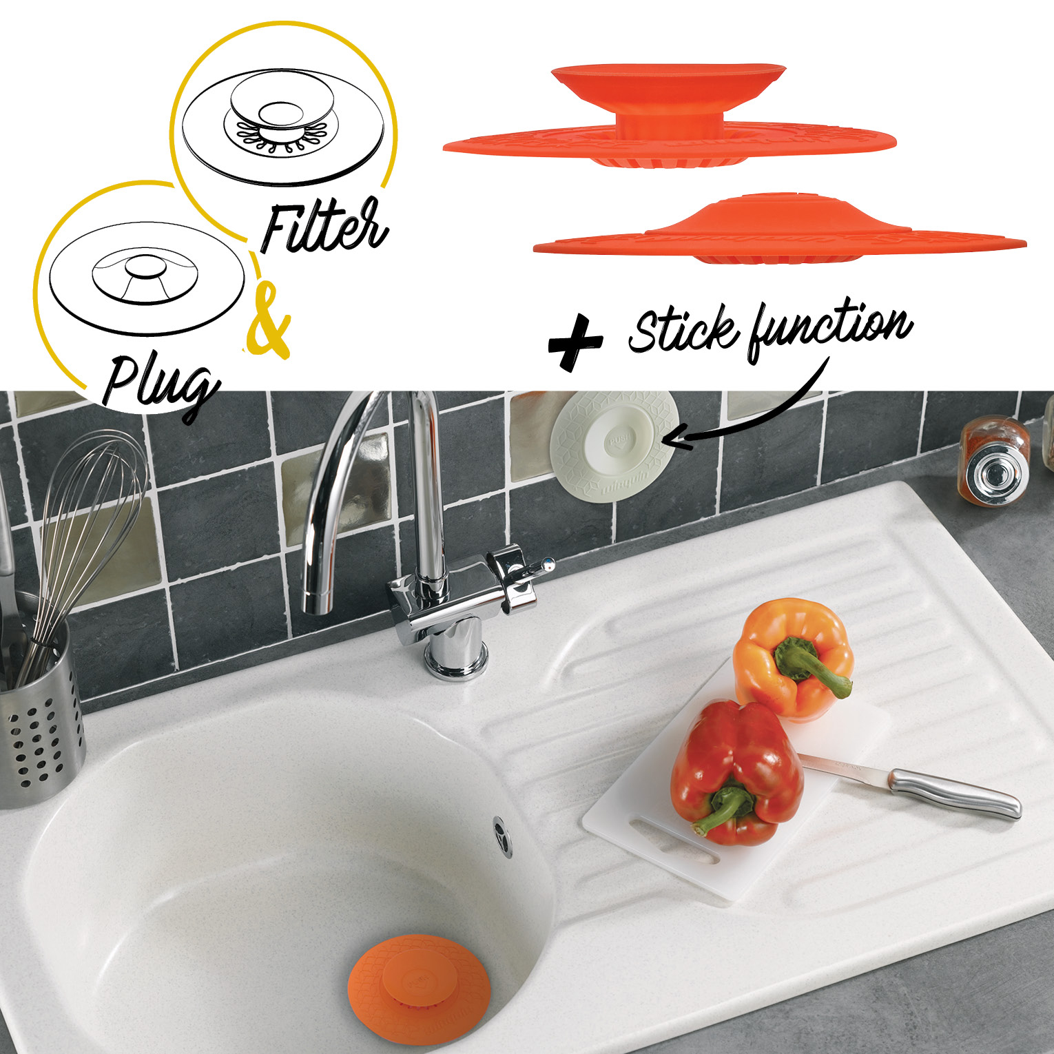 - Applications 2 en 1: bouchon d'évier ou filtre;