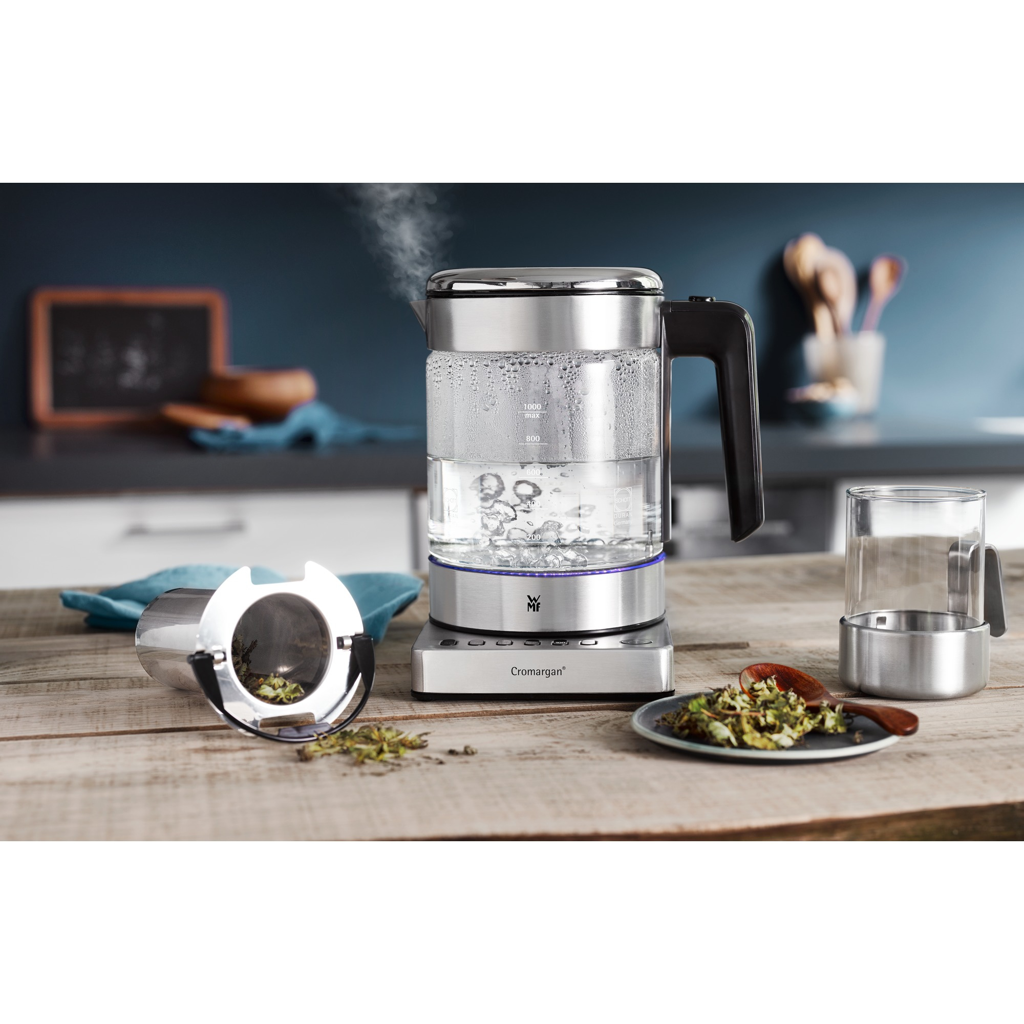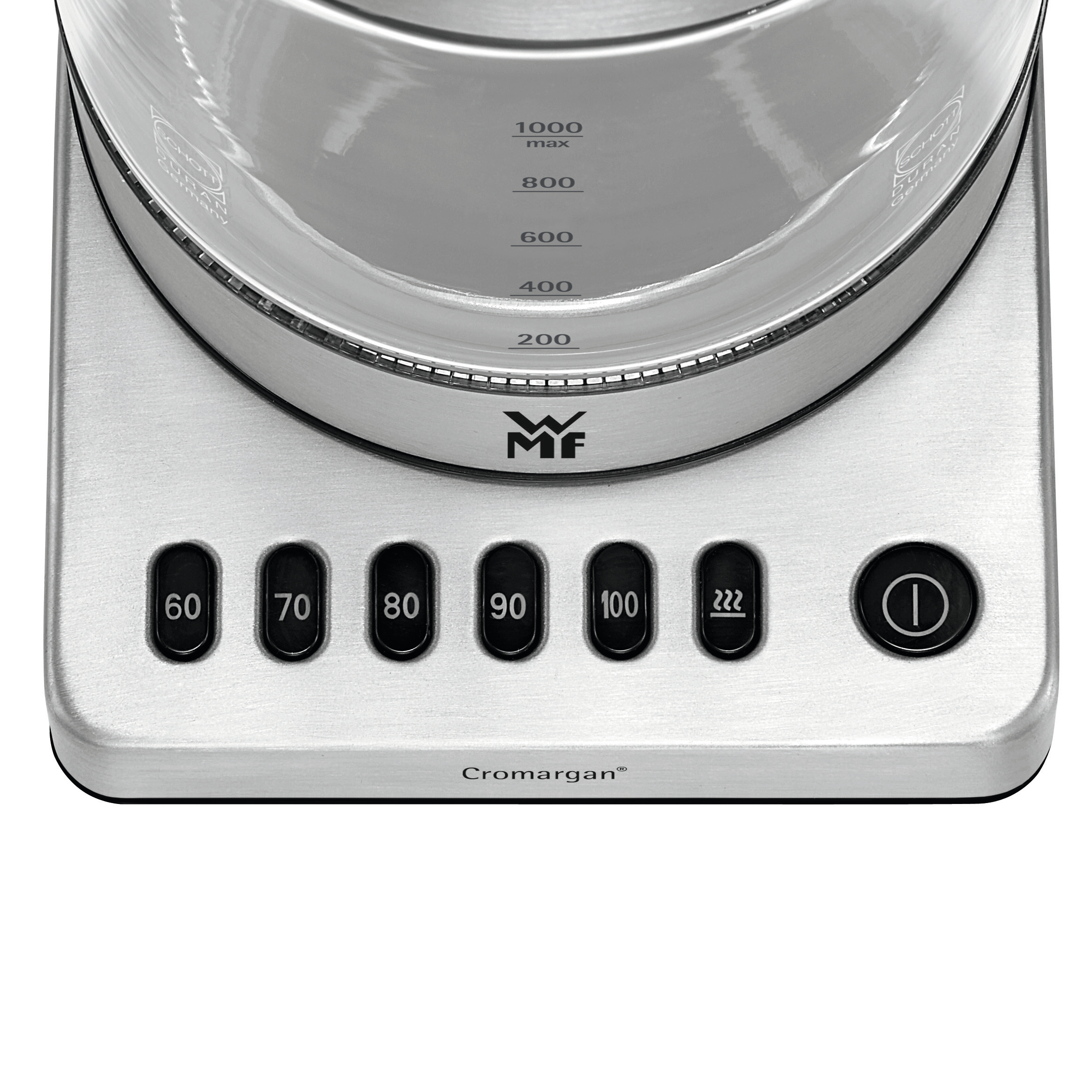 WMF KITCHENminis 04.1318.0012. Capacité du réservoir d'eau: 1 L. Puissance: 1960 W. Couleur du produit: Acier inoxydable, Matériau du boîtier/corps: Verre, Thermostat réglable, Indicateur de niveau d'eau. Sans fil. Fonction garder au chaud, Filtrage