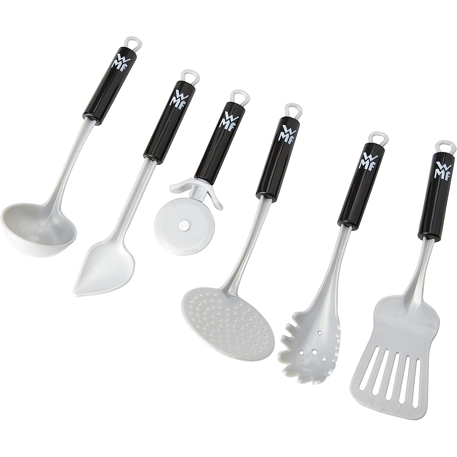 Pratique ce support pour ranger tous les ustensiles de cuisine estampillés de la licence WMF : Spatule, Louche, Roulette à pizza, Cuillère à pâtes, Ecumoire, Cuillère à mélanger. A partir de 3 ans.