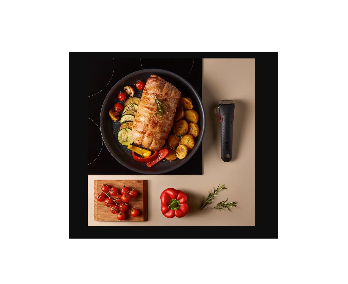 Vous voulez vous simplifier la vie en cuisine ? Ingenio est là pour vous aider ! Grâce à sa poignée amovible (1), vous pourrez cuire sur la plaque de cuisson, gratiner vos recettes au four et conserver les restes au frigo. Et en plus, gagnez de la place dans vos placards grâce à son empilabilité : Ingenio, c’est bien plus qu’une poêle ! Une cuisson intensive exige une poêle capable de résister à des conditions extrêmes. Dotée du tout nouveau revêtement TITANIUM ANTI-RAYURES, la poêle Ingenio Eco Resist offre une durabilité antiadhésive exceptionnelle qui résiste même aux ustensiles en métal et élève la cuisine à un tout autre niveau.