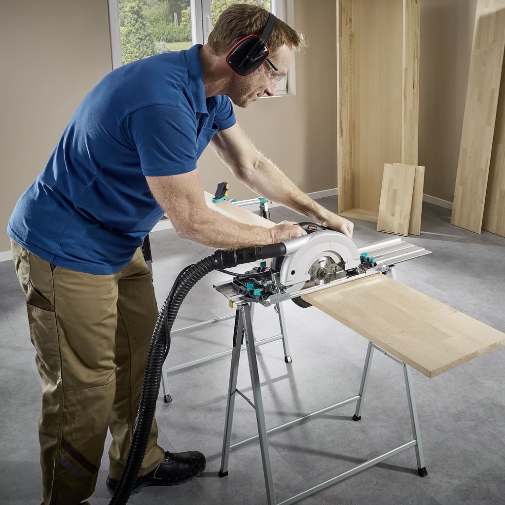 Montez la barre de guidage pour les scies circulaires de la marque wolfcraft sur votre scie circulaire. Vous êtes prêt à couper le bois, le plastique, le métal et bien plus encore.
