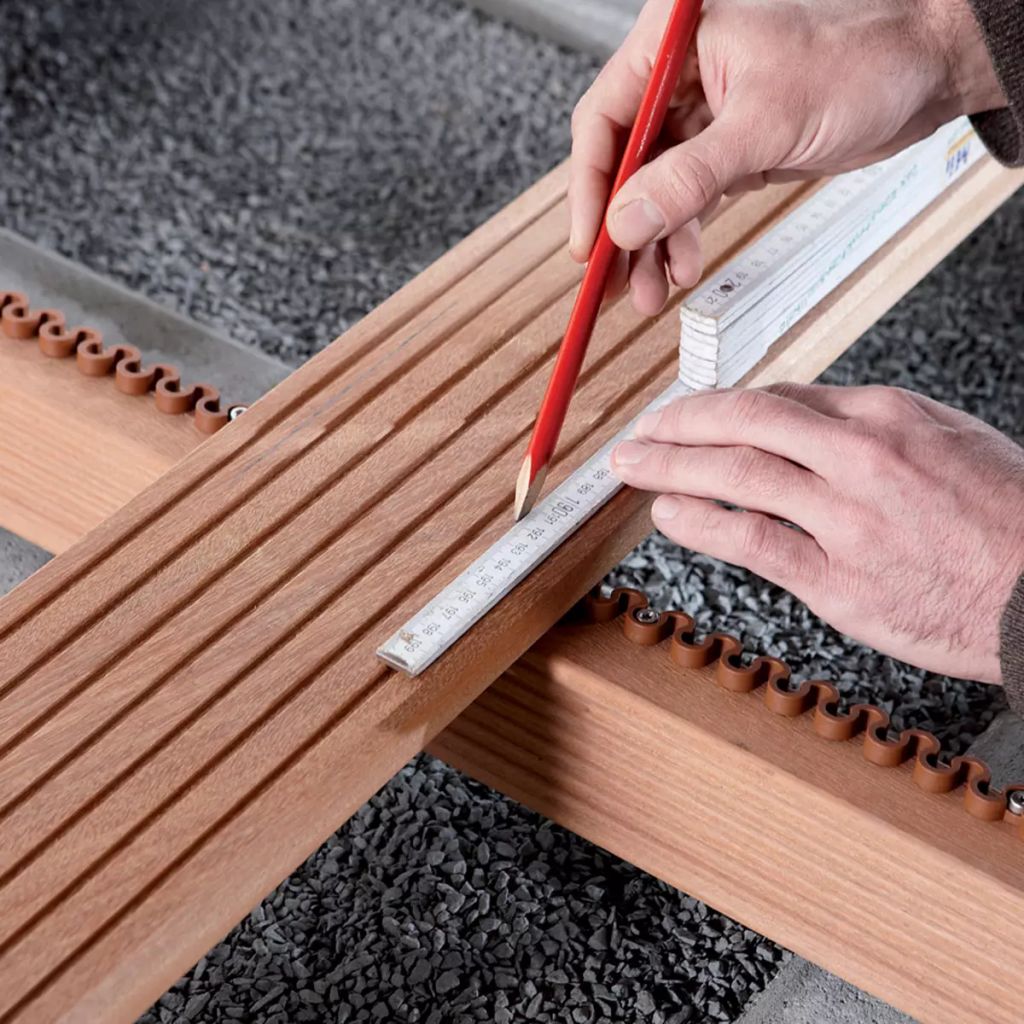 - Pour le placement précis des trous de perçage sur les panneaux de terrasse