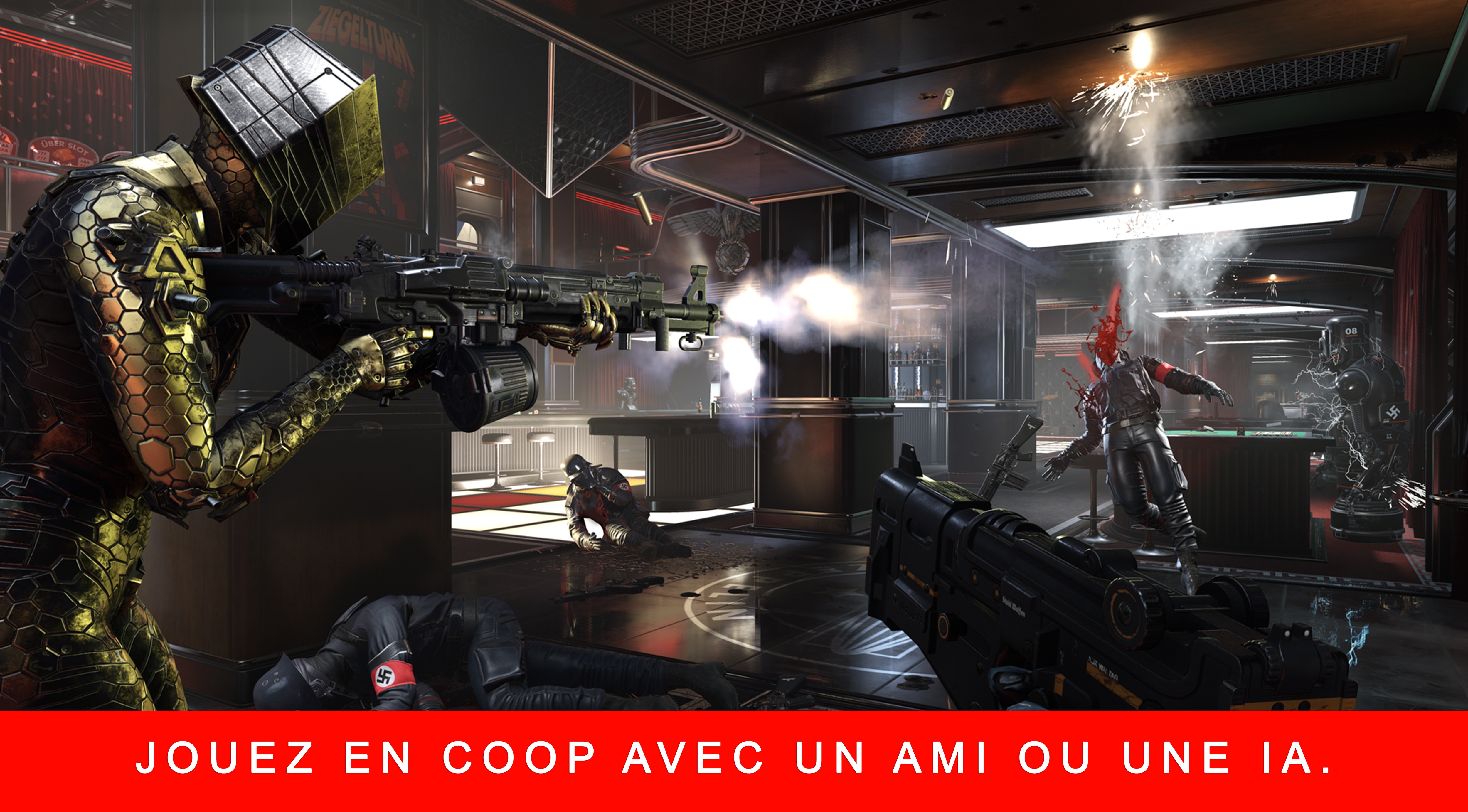 Wolfenstein : Youngblood est une toute nouvelle aventure coopérative créée par MachineGames en partenariat avec Arkane Studios® Lyon. Incarnez l'une des jumelles de BJ Blazkowicz et lancez-vous dans une mission risquée pour retrouver votre père, dans le Paris des années 80. Maniez tout un arsenal de nouvelles armes, de gadgets et d'aptitudes propres à votre héroîne pour virer les nazis de la Ville Lumière.