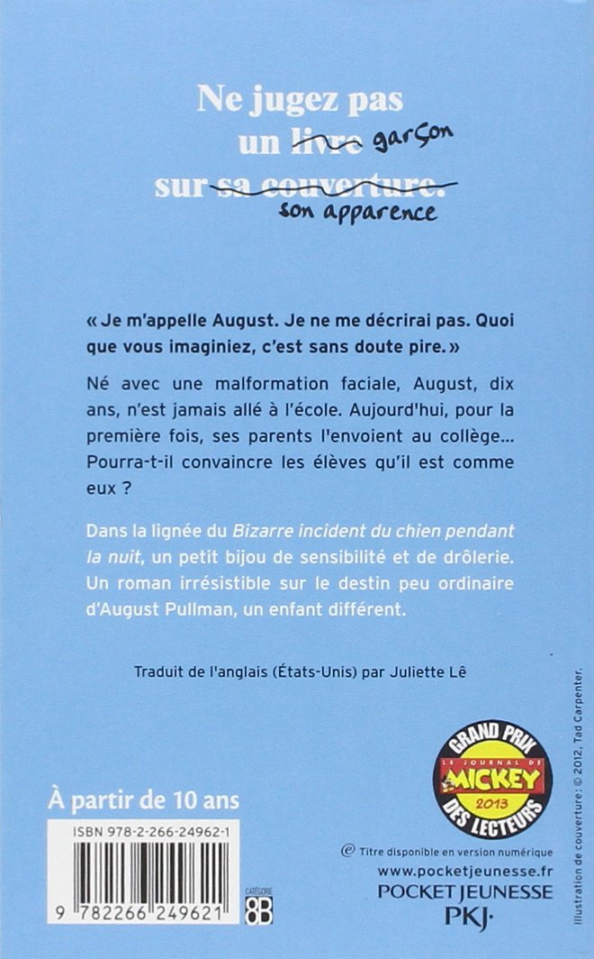 Né avec une malformation faciale, August, dix ans, n'est jamais allé à l'école. Aujourd'hui, pour la première fois, ses parents l'envoient au collège... Pourra-t-il convaincre les élèves qu'il est comme eux ?