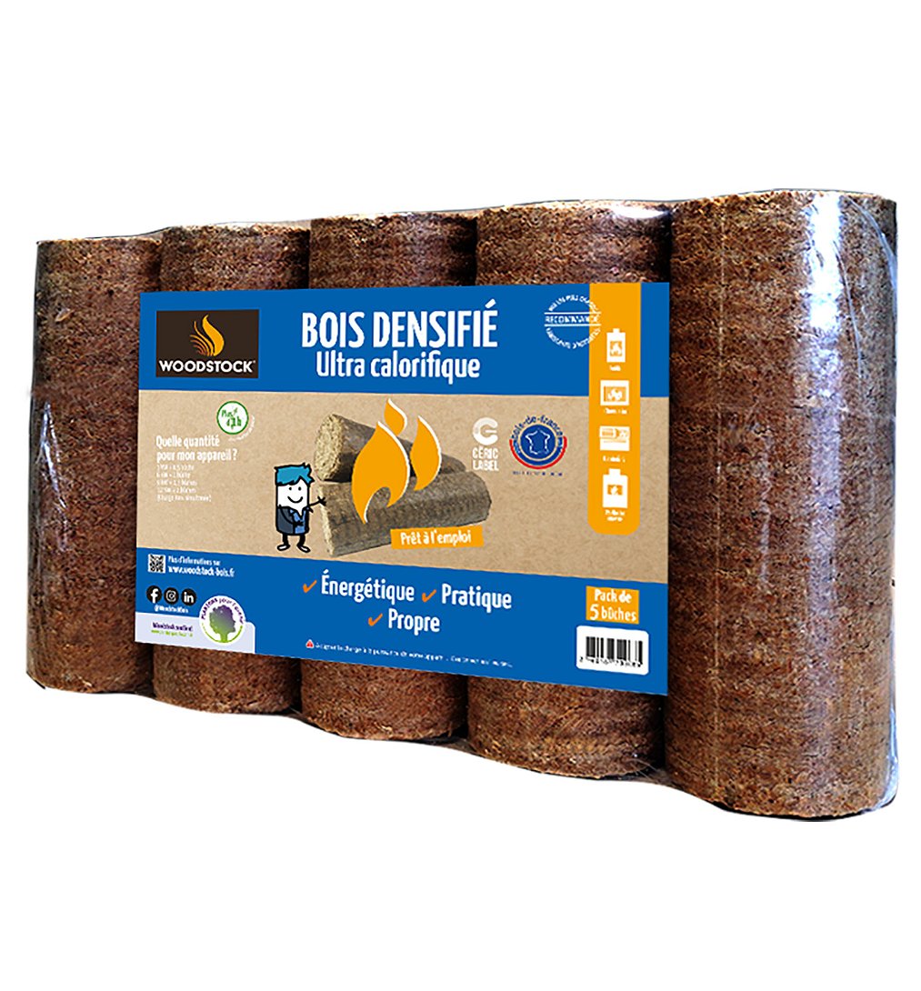 Les bûches densifiées Woodstock Bois sont composées de sciure et copeaux de bois compressés à très haute densité, 100% naturelles, haute performance énergétique garantie !