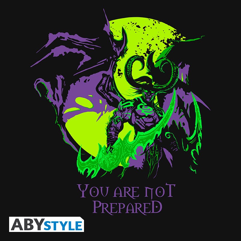 Rejoignez les rangs des Illidaries avec ce T-shirt World of Warcraft par ABYstyle et prêtez allegeance à Illidan Hurlorage ! Clamez ainsi aux aventuriers qui pénêtrent votre royaume; "Vous n'êtes pas prêts!"