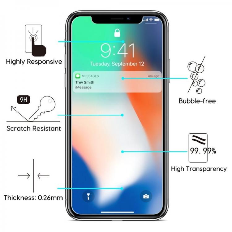 Ne craignez plus les rayures et la poussière! Le verre trempé protège l'écran de votre iPhone X des chocs et éclaboussures.
