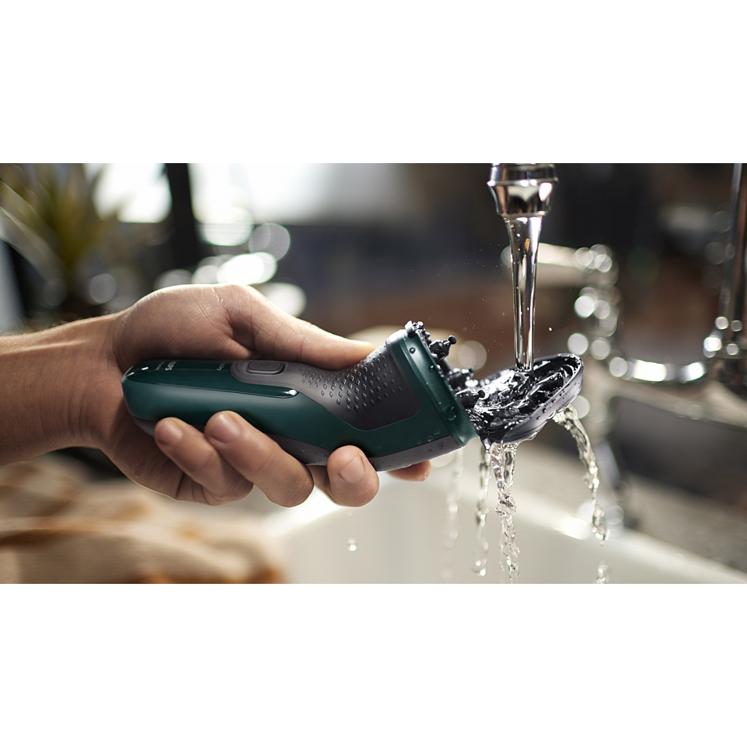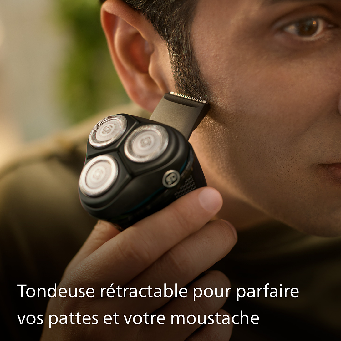 Un rasage de près confortable Grâce au rasoir électrique 100 % étanche Series 3000X de Philips, obtenez un rasage net et confortable à un bon rapport qualité-prix. Les 27 lames PowerCut auto-affûtées, l’utilisation sur peau sèche ou humide et la tondeuse rétractable rendent le rasoir facile à utiliser et toujours fiable. Lames PowerCut pour un rasage de près uniforme Les 27 lames auto-affûtées coupent chaque poil au-dessus du niveau de la peau de manière uniforme pour un résultat lisse et régulier à chaque fois. Nos lames auto-affûtées restent comme neuves pendant 2 ans. Rasage sur peau humide ou sèche au-dessus du lavabo ou sous la douche Optez pour un rasage pratique sur peau sèche ou utilisez votre mousse ou gel préféré pour un rasage rafraîchissant sur peau humide, même sous la douche. Les têtes flexibles dans 4 directions suivent les contours de votre visage, pour un rasage confortable Les têtes flottantes s’inclinent dans quatre directions pour maintenir un contact régulier avec votre peau et la protéger des irritations et des coupures. Le système de rasage antirouille respecte la peau Nos lames de rasoir sont fabriquées en acier hypoallergénique de qualité chirurgicale pour résister à la corrosion, éviter les impuretés et protéger votre peau. Tondeuse rétractable pour la moustache et les pattes Affinez et définissez votre moustache et vos pattes avec la tondeuse rétractable pour peaufiner votre look. Ouverture d'une simple pression pour faciliter le nettoyage La tête de rasage s’ouvre d’une simple pression sur un bouton pour vous permettre de la rincer à l’eau courante. 40 minutes d'autonomie pour 1 h de charge En seulement une heure, la batterie NiMH durable est complètement chargée pour environ 13 rasages. Vous êtes pressé ? Une charge rapide de 5 minutes suffit pour un rasage. Forme ergonomique pour une manipulation facile Gardez toujours une bonne prise en main. Le manche ergonomique en caoutchouc assure une prise en main sûre et confortable, même lorsqu’il est humide. L’indicateur d’autonomie vous indique quand une charge est nécessaire Ne soyez jamais à court de batterie. L’indicateur d’autonomie vous indique si la batterie est faible, déchargée ou en charge. Charge pratique Chez Philips, nous favorisons la durabilité à tous les niveaux de la création de produits. Notre objectif est de réduire le gaspillage et de minimiser le nombre d’adaptateurs USB que nous mettons sur le marché. Si vous avez besoin d’un adaptateur, vous pouvez vous procurer une unité d’alimentation adaptée sur : www.philips.com/support Fabriqué avec soin pour vous et la planète L’emballage de ce rasoir ne contient pas de plastique et est composé à 90 % de matériaux recyclés, tandis que notre site de production de lames utilise 100 % d’électricité renouvelable. Étanche pour un nettoyage facile ou une utilisation sous la douche Rincez-la sous l’eau courante ou rasez-vous sous la douche. L’indice d’étanchéité IPX 7 signifie qu’elle peut être immergée dans un mètre d’eau pendant 30 minutes maximum.