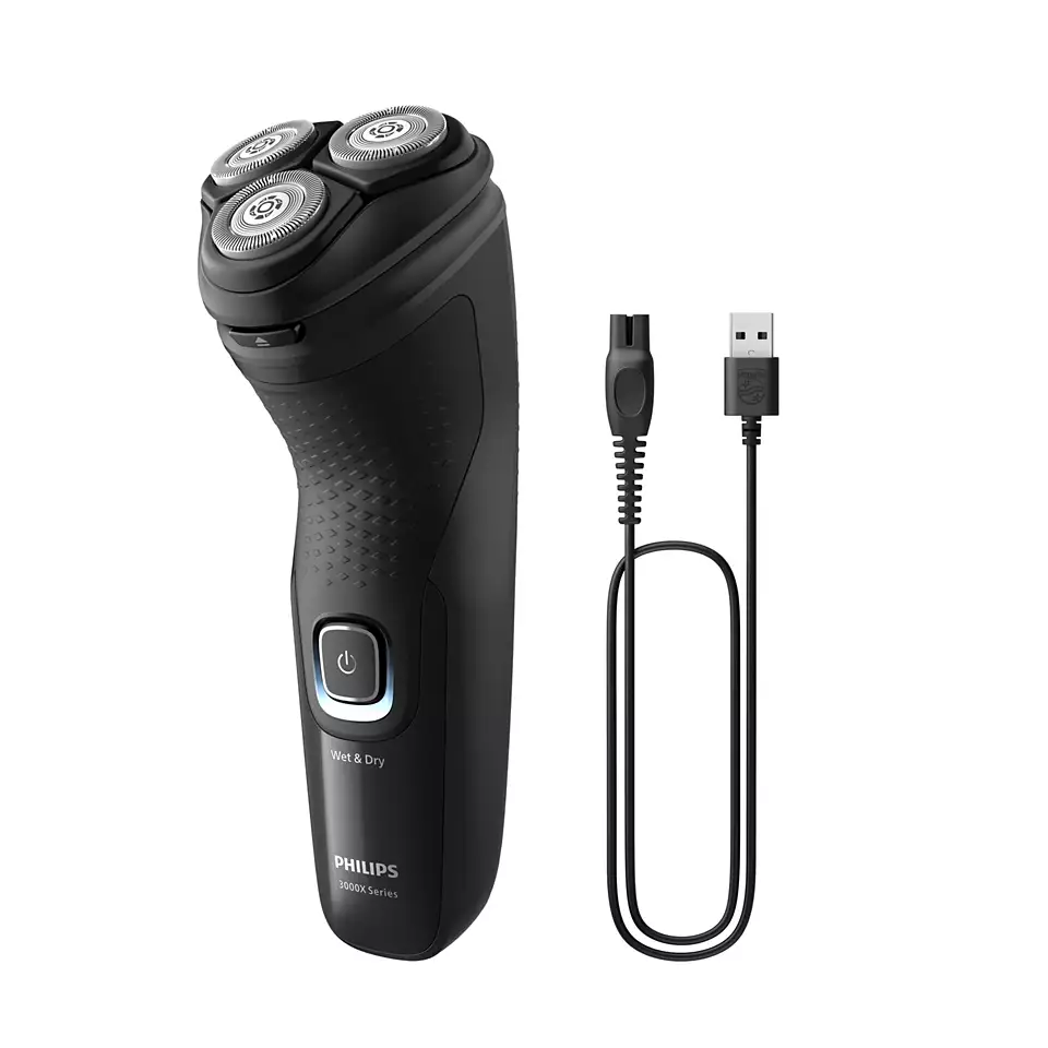 Un rasage de près confortable Grâce au rasoir électrique 100 % étanche Series 3000X de Philips, obtenez un rasage net et confortable à un bon rapport qualité-prix. Les 27 lames PowerCut auto-affûtées, l’utilisation sur peau sèche ou humide et la tondeuse rétractable rendent le rasoir facile à utiliser et toujours fiable. Lames PowerCut pour un rasage de près uniforme Les 27 lames auto-affûtées coupent chaque poil au-dessus du niveau de la peau de manière uniforme pour un résultat lisse et régulier à chaque fois. Nos lames auto-affûtées restent comme neuves pendant 2 ans. Rasage sur peau humide ou sèche au-dessus du lavabo ou sous la douche Optez pour un rasage pratique sur peau sèche ou utilisez votre mousse ou gel préféré pour un rasage rafraîchissant sur peau humide, même sous la douche. Les têtes flexibles dans 4 directions suivent les contours de votre visage, pour un rasage confortable Les têtes flottantes s’inclinent dans quatre directions pour maintenir un contact régulier avec votre peau et la protéger des irritations et des coupures. Le système de rasage antirouille respecte la peau Nos lames de rasoir sont fabriquées en acier hypoallergénique de qualité chirurgicale pour résister à la corrosion, éviter les impuretés et protéger votre peau. Tondeuse rétractable pour la moustache et les pattes Affinez et définissez votre moustache et vos pattes avec la tondeuse rétractable pour peaufiner votre look. 45 minutes d'autonomie pour 1 h de charge En seulement une heure, la batterie NiMH durable est complètement chargée pour environ 15 rasages. Vous êtes pressé ? Une charge rapide de 5 minutes suffit pour un rasage. Ouverture d'une simple pression pour faciliter le nettoyage La tête de rasage s’ouvre d’une simple pression sur un bouton pour vous permettre de la rincer à l’eau courante. Forme ergonomique pour une manipulation facile Gardez toujours une bonne prise en main. Le manche ergonomique en caoutchouc assure une prise en main sûre et confortable, même lorsqu’il est humide. L’indicateur d’autonomie vous indique quand une charge est nécessaire Ne soyez jamais à court de batterie. L’indicateur d’autonomie vous indique si la batterie est faible, déchargée ou en charge. Charge pratique Philips, favorise la durabilité à tous les niveaux de la création de produits. Notre objectif est de réduire le gaspillage et de minimiser le nombre d’adaptateurs USB que nous mettons sur le marché. Si vous avez besoin d’un adaptateur, vous pouvez vous procurer une unité d’alimentation adaptée sur : www.philips.com/support Fabriqué avec soin pour vous et la planète L’emballage de ce rasoir ne contient pas de plastique et est composé à 90 % de matériaux recyclés, tandis que notre site de production de lames utilise 100 % d’électricité renouvelable. Étanche pour un nettoyage facile ou une utilisation sous la douche Rincez-le sous l’eau courante ou rasez-vous sous la douche. L’indice d’étanchéité IPX 7 signifie qu’il peut être immergé dans un mètre d’eau pendant 30 minutes maximum.