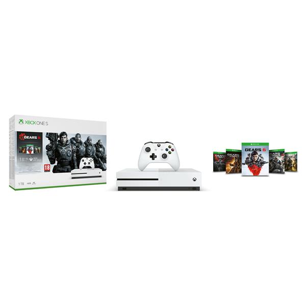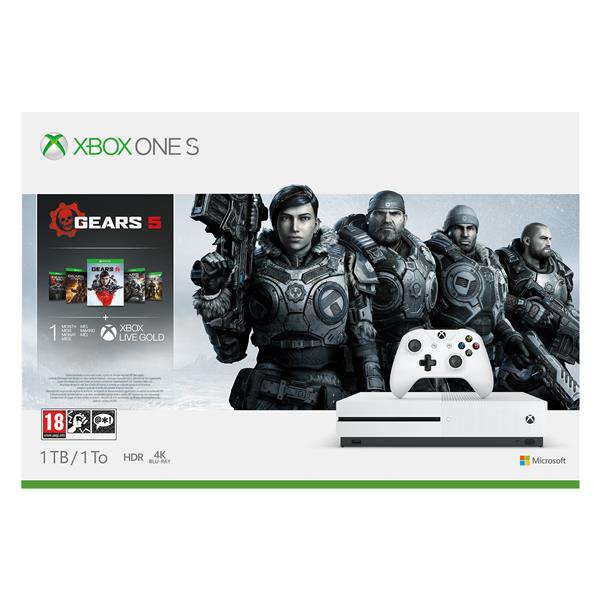 Ce pack contient : - une console Xbox One S 1 To - une Manette Xbox Sans Fil - le téléchargement complet du jeu Gears 5 - le téléchargement complet des jeux Gears of War : Ultimate Edition et Gears of War 2, 3 et 4, - une période d'essai d'un mois de Xbox Game Pass et un mois de Xbox Live Gold.