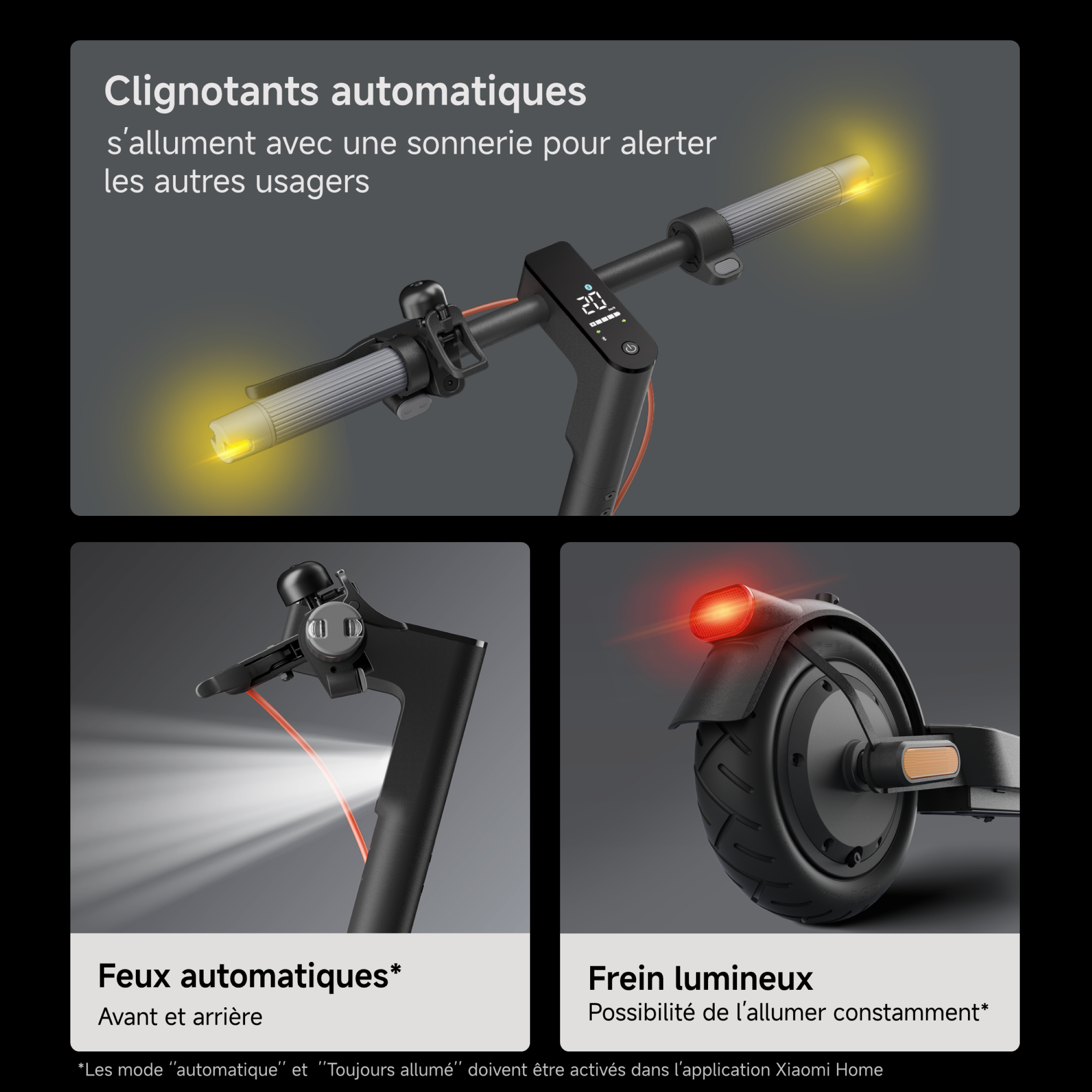 Conduite en douceur Suspensions avant à ressorts Brillez sur la route Clignotants et feux auto IPX5 Résistance à l’eau Couvre de longues distances Autonomie jusqu’à 60km