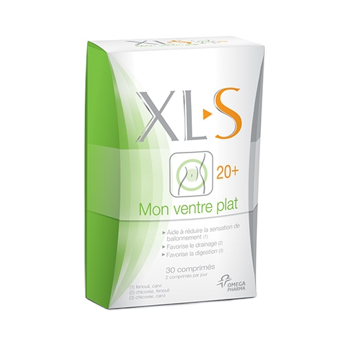 XLS 20+ Mon Ventre Plat 30 Comprimés est un complément alimentaire pour les femmes de 20 à 45 ans qui désirent mincir dans la région abdominale et éliminer l'excès d'eau. XLS est efficace grâce à ses substances actives qui exercent une action ciblée sur le ventre. En effet, le Fenouil et le Carvi aident à réduire la sensation de ballonnement, facilitant aussi la digestion et la Chicorée et le Fenouil contribuent au drainage dans la région abdominale, éliminant les excès d'eau.