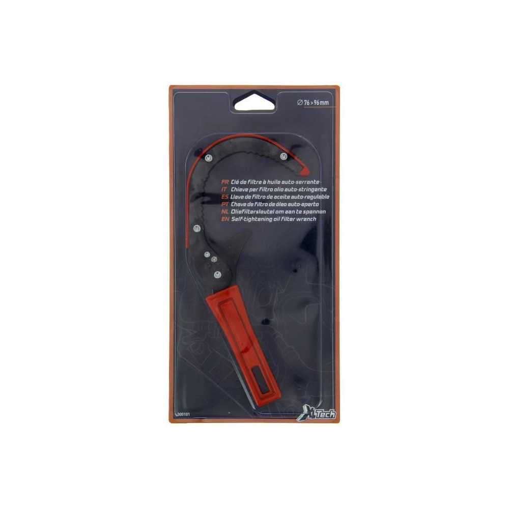 Clé auto-serrante XLTECH pour filtres à huile de Ø 76–96 mm, en acier robuste.