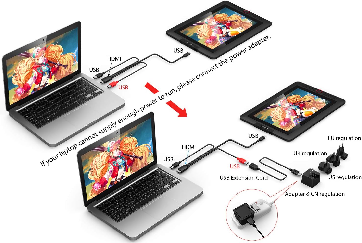 Supporte Windows® 10/8/7 (32 / 64bit), Mac OS X® 10.10 et supérieur. Compatible avec les logiciels d'art numérique populaires tels que Adobe® Photoshop®, Illustrator®, SAI®, CDR®, GIMP®, Krita®, Medibang®, Fire Alpaca®, Blender® 3D etc. (Nous offrons aussi le logiciel de dessin OpenCanvas 7 pour nos clients gratuitement, n’hésitez pas à nous contacter avec votre N° de commande pour l’obtenir.)