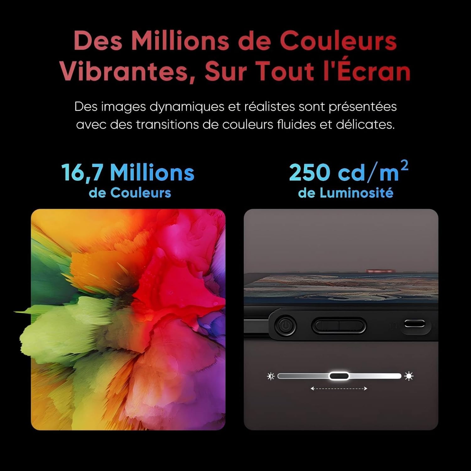 Luminosité (standard) : 250 cd/㎡