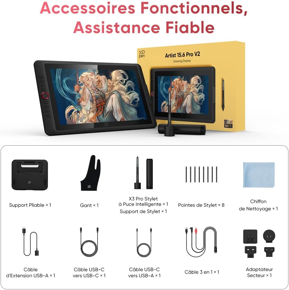 XPPen Artist 15.6 Pro V2 Tablette Graphique avec Ecran en 15,4 Pouces X3 Pro Stylet à Puce Intelligente 1