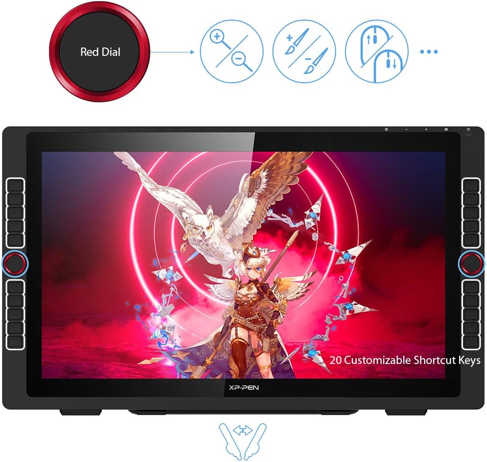 【Repensée pour créer davantage, plus naturellement】Le Stylet sans batterie PA2 supporte jusqu'à 60 degrés de fonction d'inclinaison et offre des performances de lignes supérieures pour créer les plus beaux traits et esquisses. La tablette XP-Pen Artist 22R Pro dispose de deux roues à cadran rouge faciles à contrôler et 20 touches de raccourci personnalisables qui sont positionnés sur les deux côtés, ce qui offre une utilisation équitable pour les utilisateurs gauchers comme droitiers.