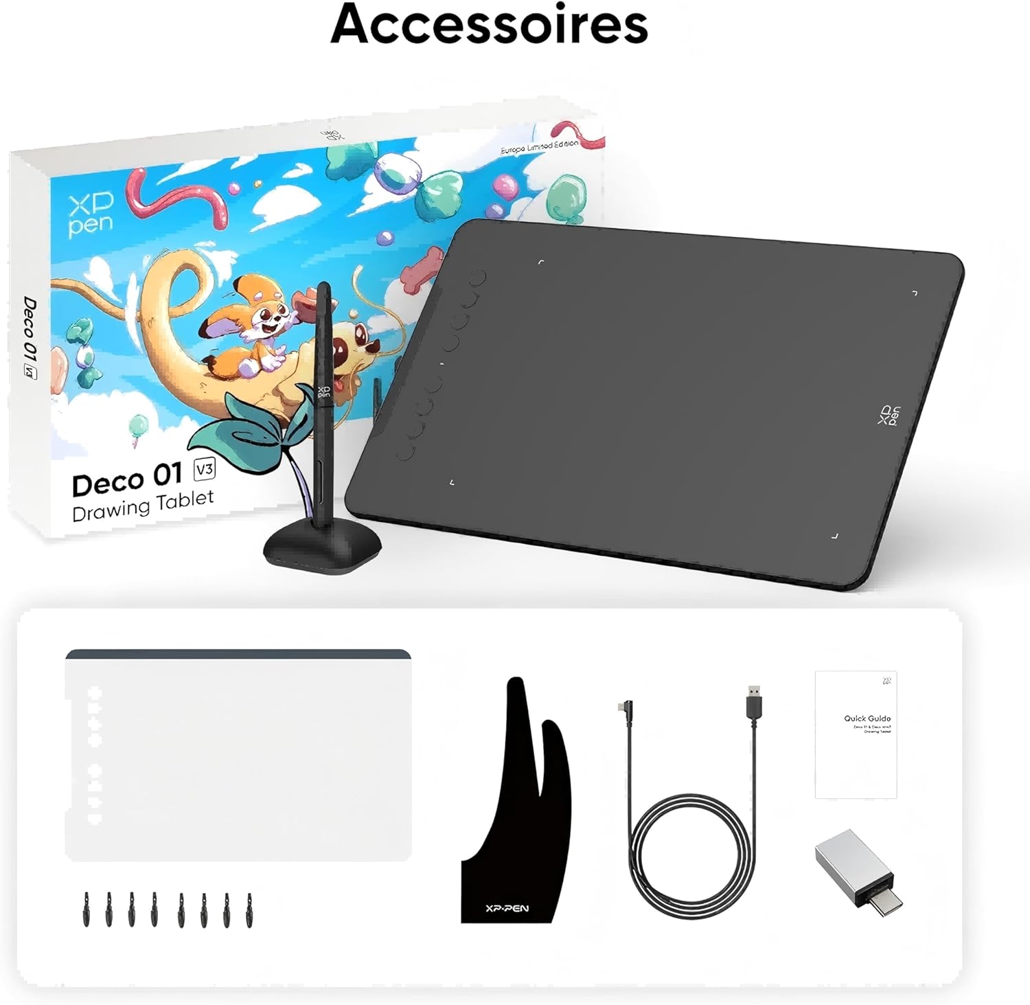 | Libellé | XPPen DECO01V3 Tablette Graphique à Dessin 10x6 Pouces Stylet Passif 16K(16384) Niveaux avec Inclinaison et 8 Raccourcis - Compatible avec Windows/Ma |