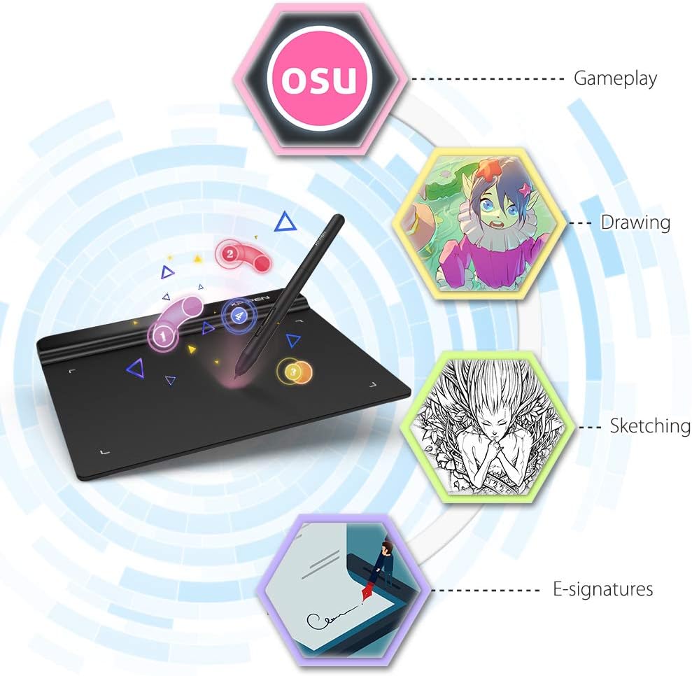 OSU! Jouer, dessin, peindre, esquisser, signer les docs électroniques, donner les cours à distance etc. Aucun pilote n'est nécessaire ! à installer. Synchronisez votre tablette avec l'application de signature Adobe Acrobat Reader DC pour signature et participer à une signature numérique professionnelle.
