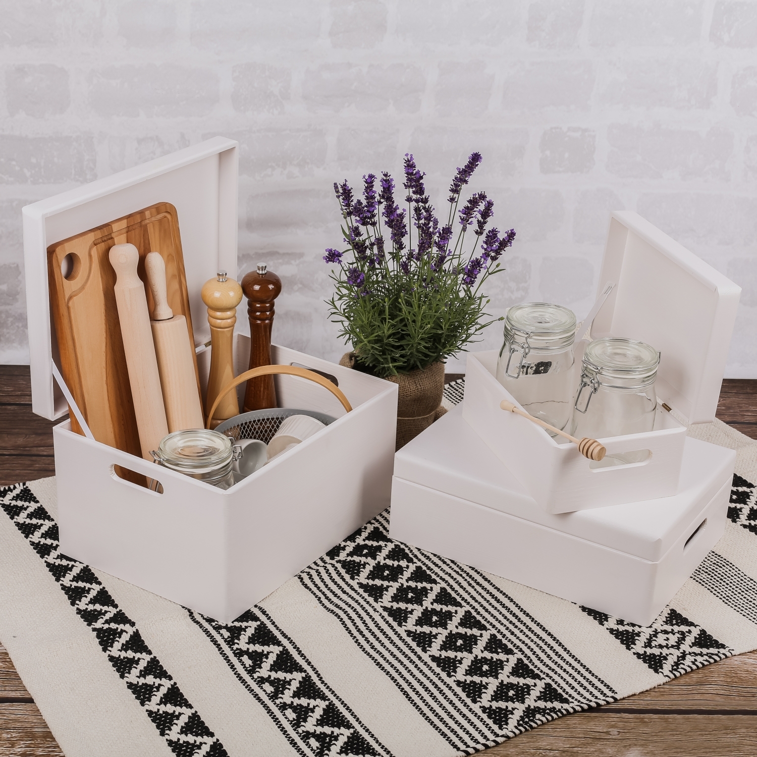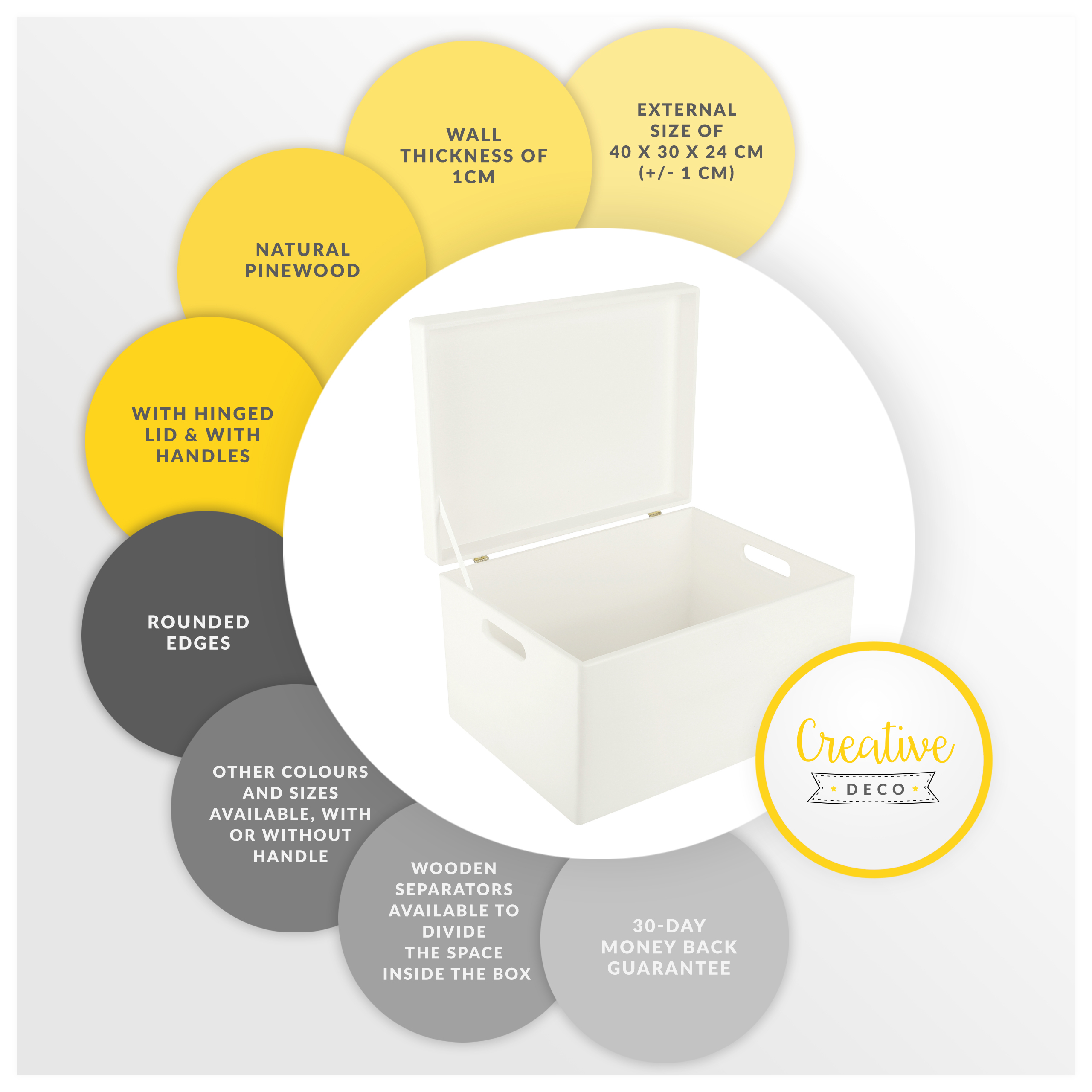XXL Boite Rangement en Bois à Décorer Blanc | 40 x 30 x 24 cm (+/- 1 cm) | avec Couvercle et Poignées