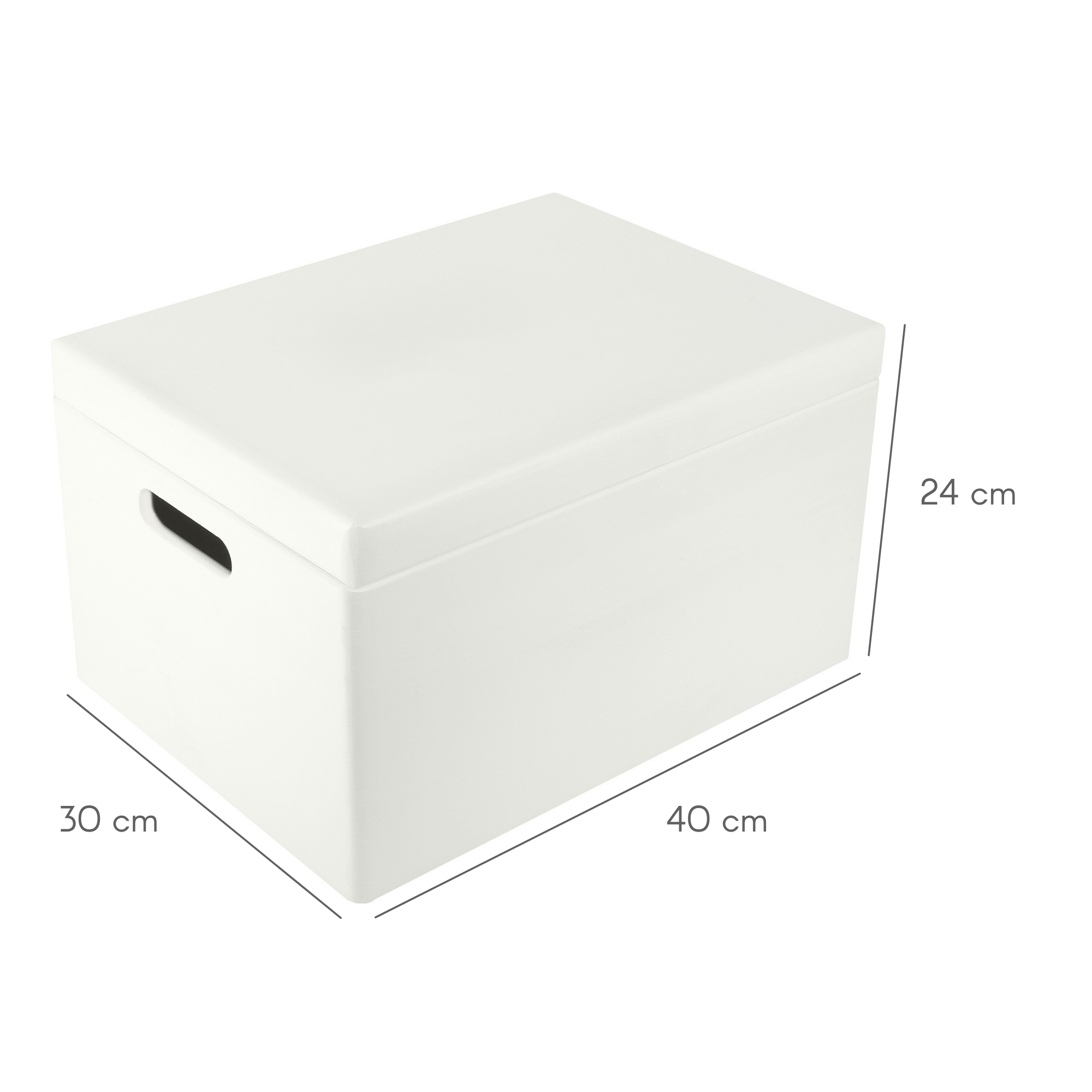 | Libellé | XXL Boite Rangement en Bois à Décorer Blanc | 40 x 30 x 24 cm (+/- 1 cm) | avec Couvercle et Poignées |