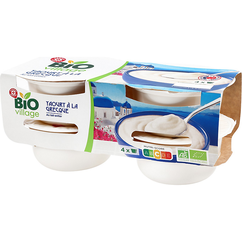 Yaourt brassé nature au lait entier et à la crème, issu de l'agriculture biologique BIO VILLAGE