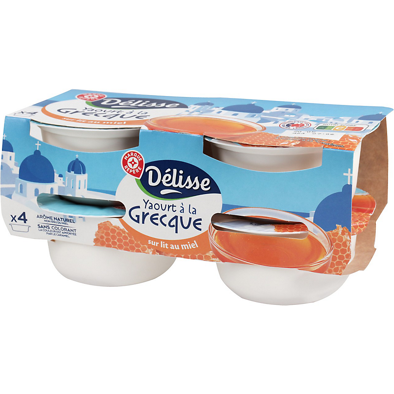 Ingrédients : Lait entier pasteurisé 60,9 %, crème pasteurisée 15,1 %, eau, sucre 7,1 %, miel 7 %, amidon, protéines de lait, épaississant : pectines, jus de citron concentré, arôme naturel, ferments lactiques, caramel (sucre, eau).