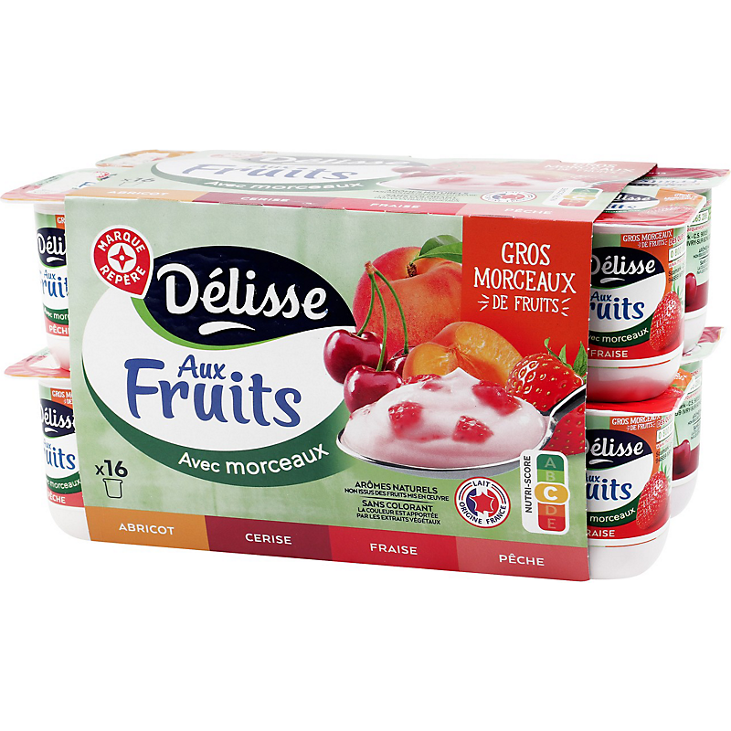 | Origine des principaux ingrédients | LAIT ORIGINE : FRANCE, FRAISE ORIGINE : AFRIQUE ET/OU EUROPE*, ABRICOT ORIGINE : AFRIQUE, ASIE ET/OU EUROPE*, PECHE ORIGINE : EUROPE, CERISE ORIGINE : EUROPE * SELON LES APPROVISIONNEMENTS ET/OU LES CARACTÉRISTIQUES GUSTATIVES RECHERCHÉES |