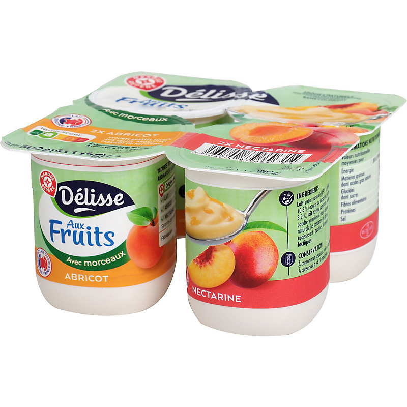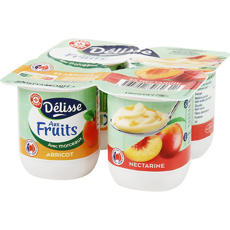 Yaourt aux fruits nectarine et abricot avec morceaux - 4 x 125 g - DELISSE